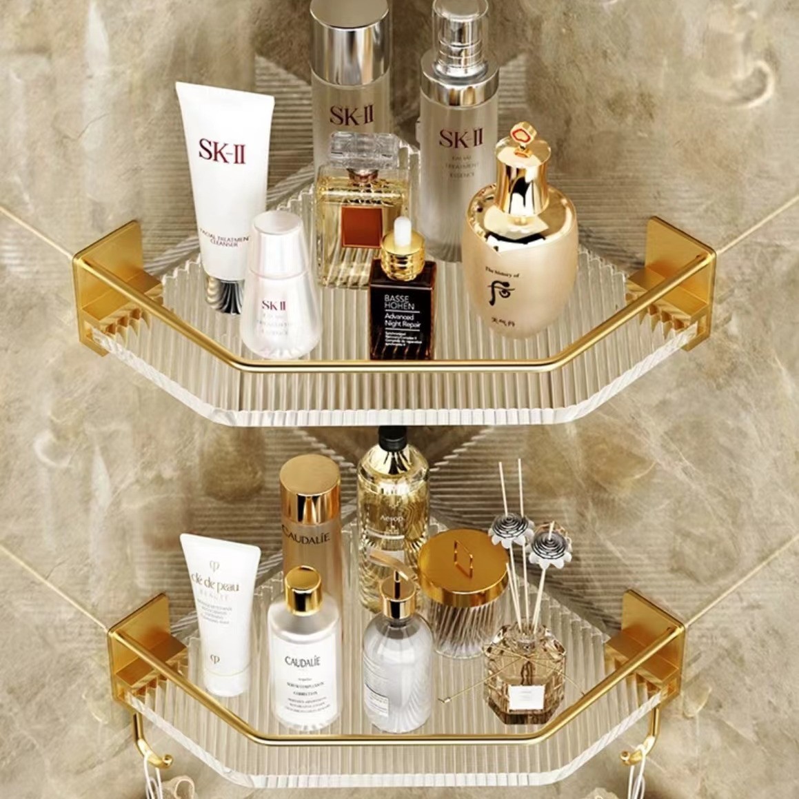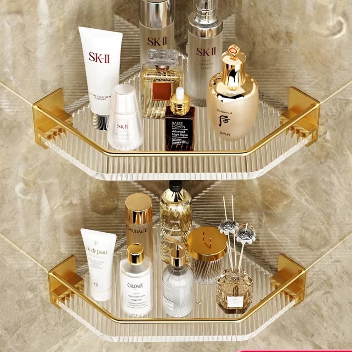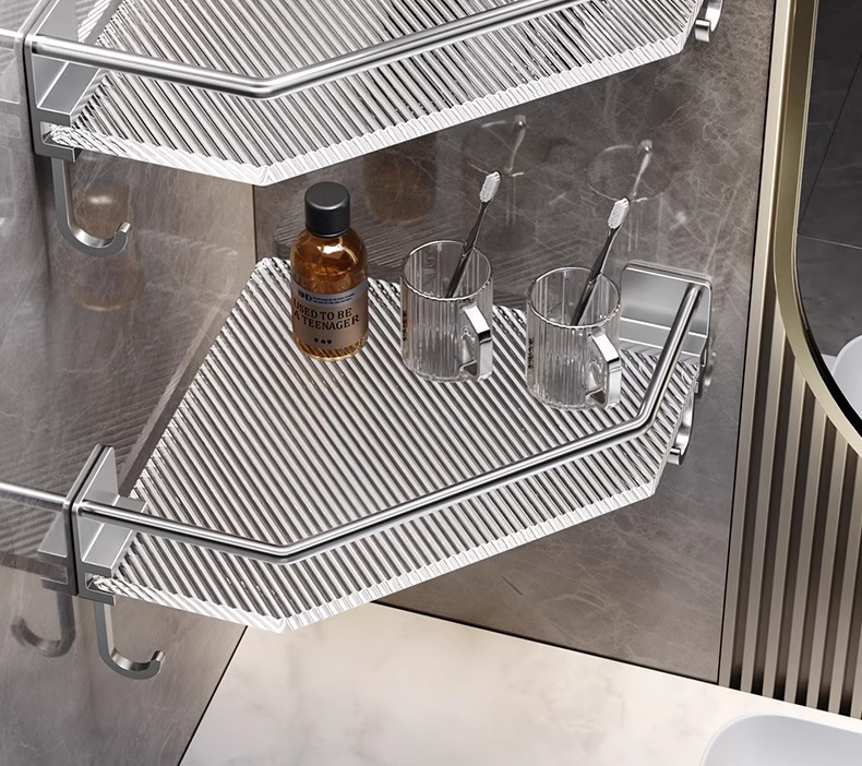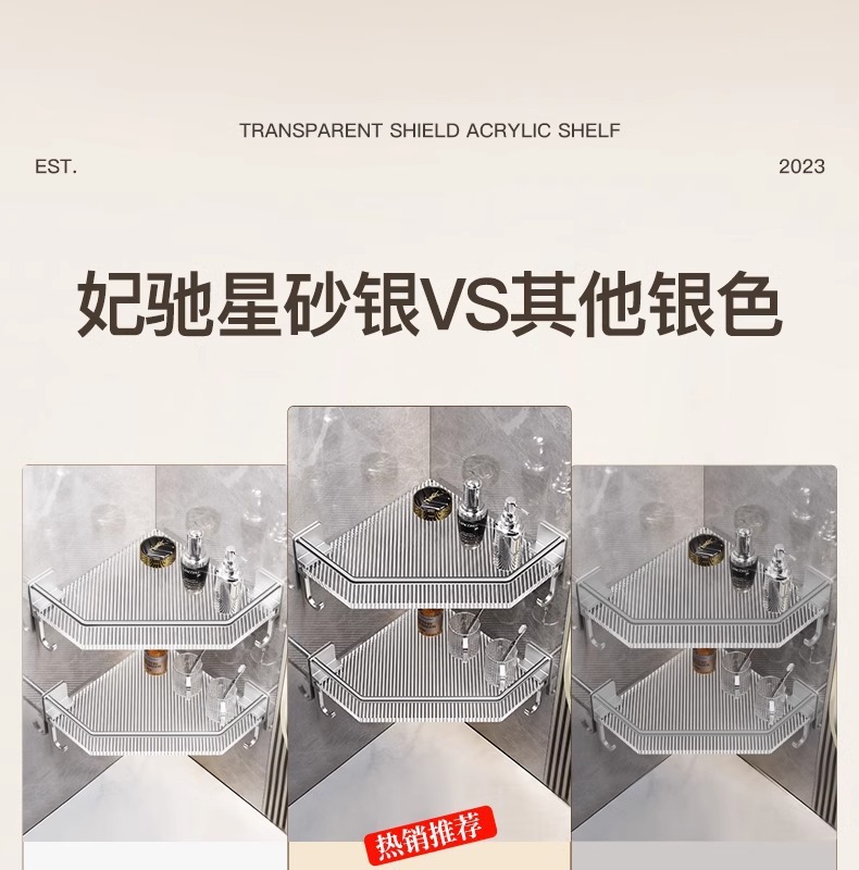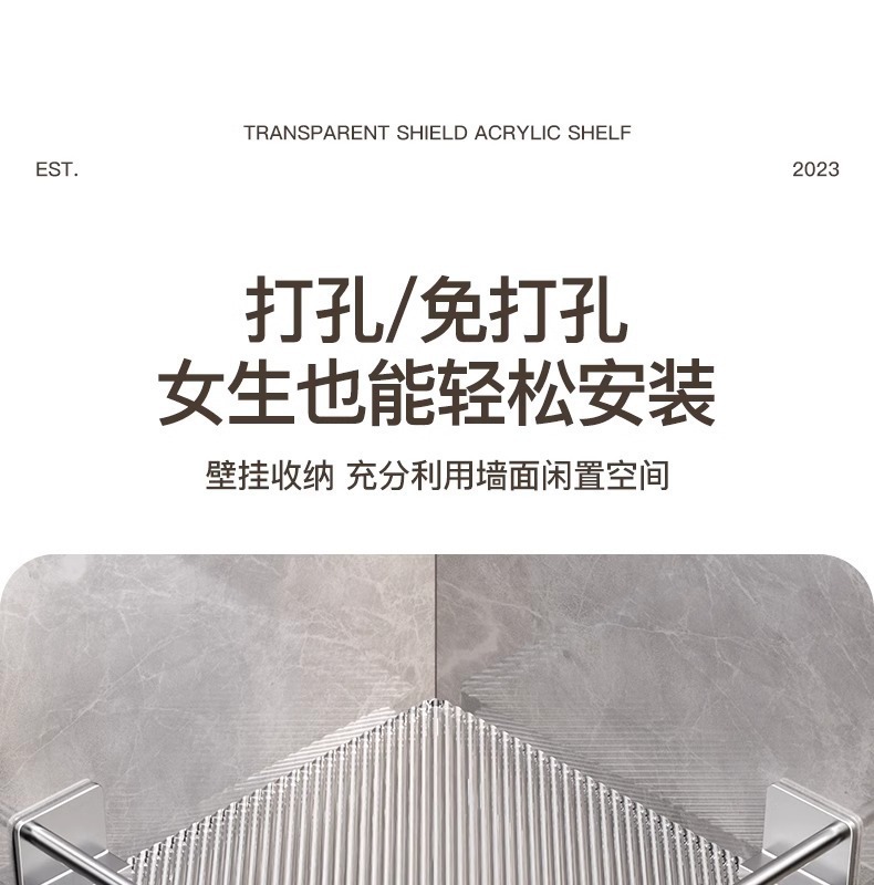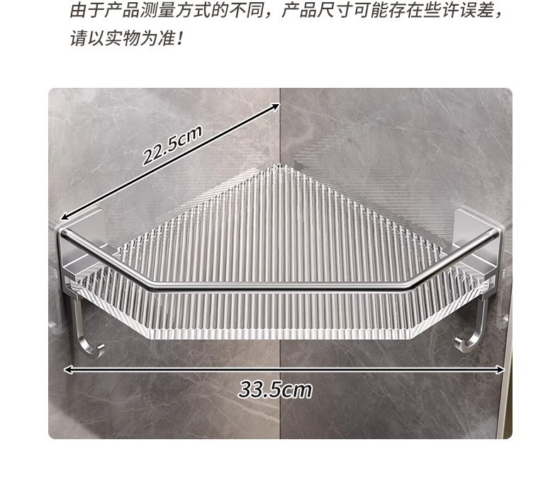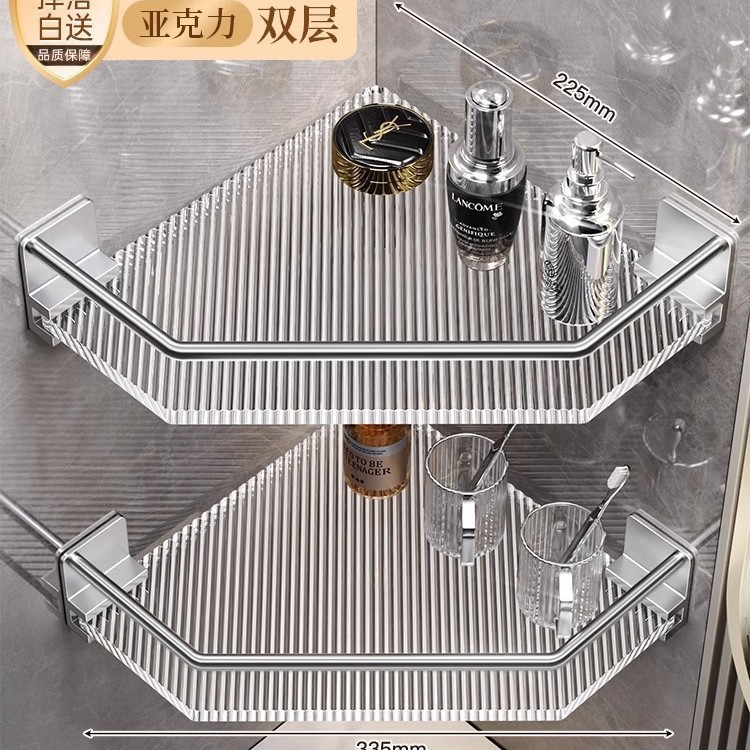 욕실 수납 선반, 욕실 삼각형 수납 선반, 펀치 없는 욕실 화장실 아크릴 코너 수납 선반