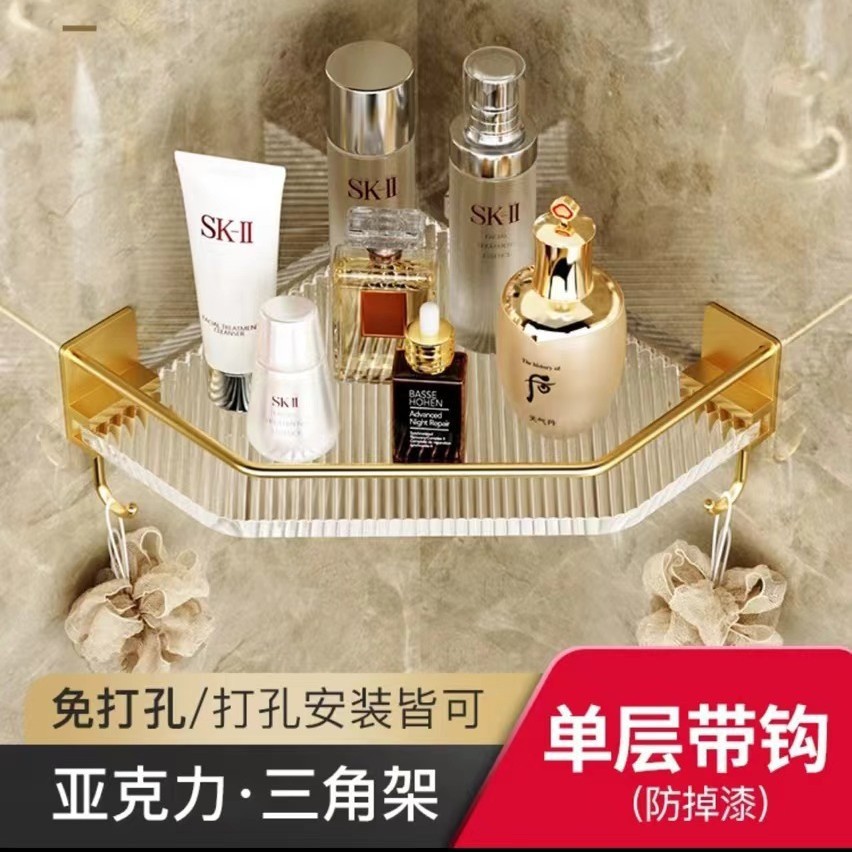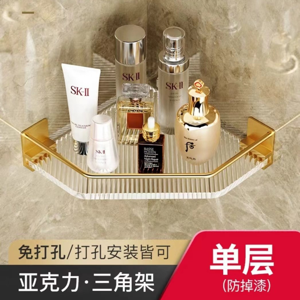욕실 수납 선반, 욕실 삼각형 수납 선반, 펀치 없는 욕실 화장실 아크릴 코너 수납 선반스토어 가기