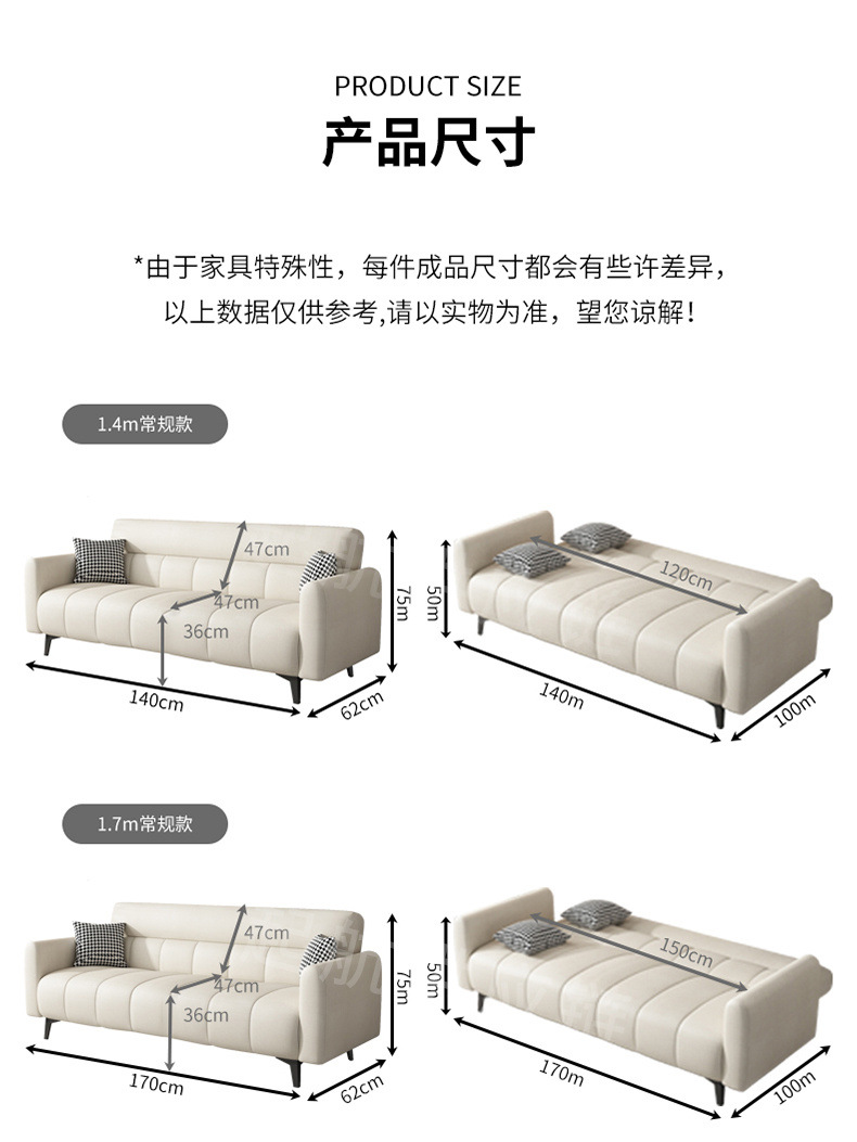 • [3인승] 팔걸이 포함 총 길이 1.7mcm (베개 제외)