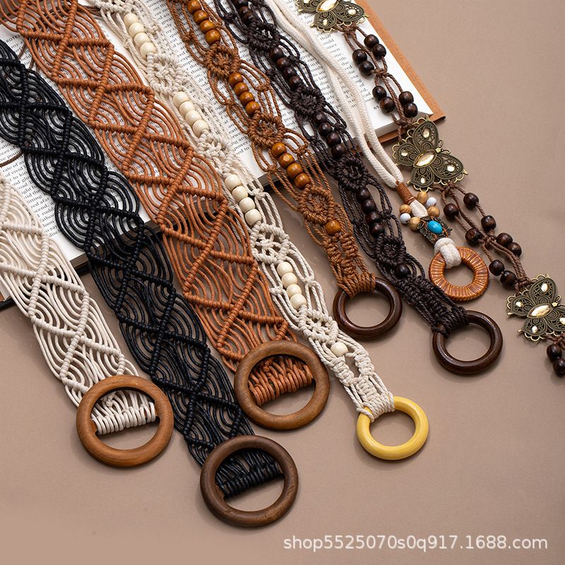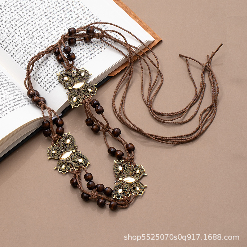 波西米亚风金属蝴蝶结腰绳女春夏新款复古民族风腰链百搭抽绳腰带饰品批发货源