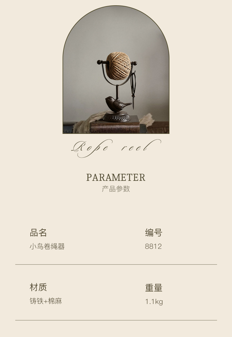 유럽 복고풍 주철 공예 새 대마 로프 라인 마무리 랙 장식품 거실 홈 입구 TV 캐비닛 장식