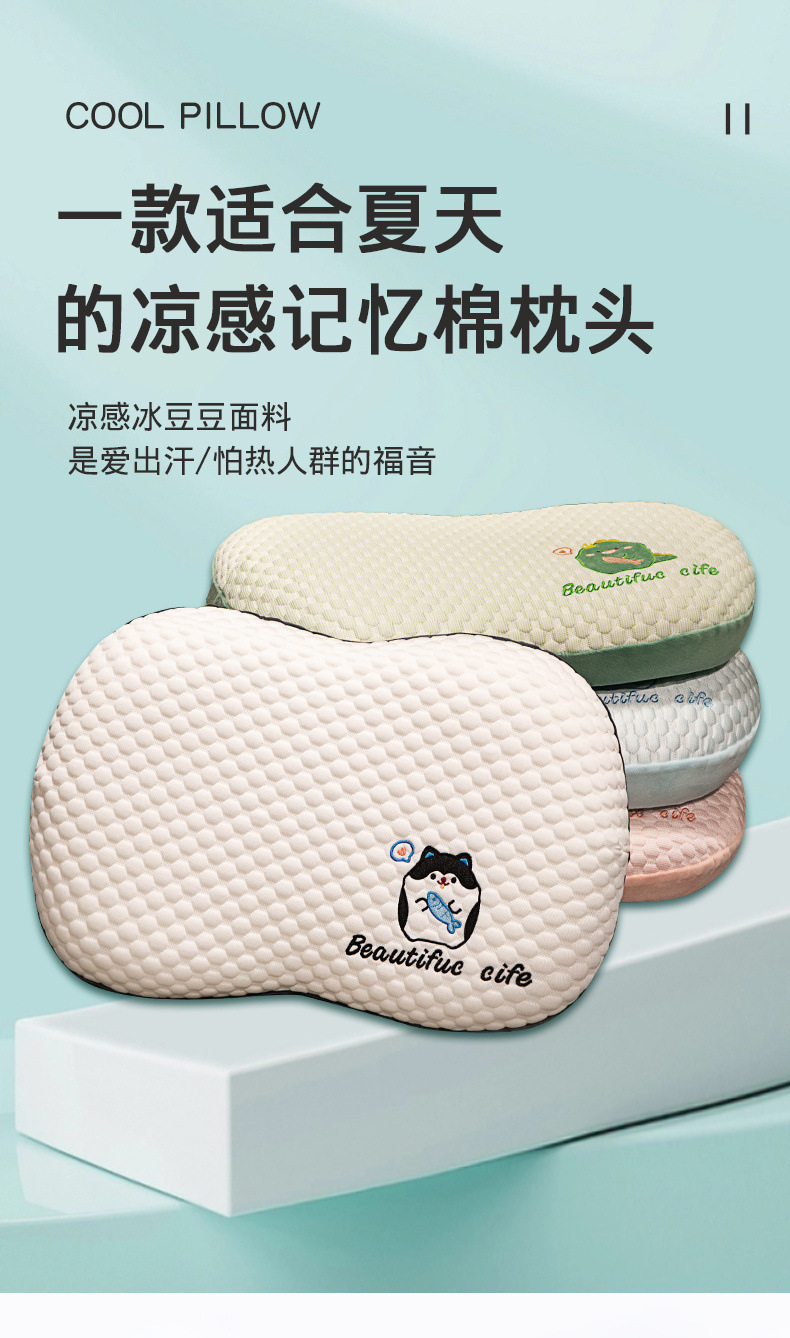 여름베개, 시원한 아이스빈 베개커버, 메모리폼베개, 경추보호, 수면보조, 학생기숙사 어린이 싱글베개