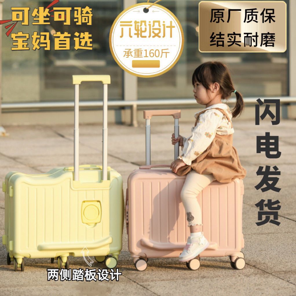 어린이용 여행가방은 앉아서 탈 수 있고 6개의 바퀴가 달린 소형 고급형 여행가방, 비밀번호 상자, 유아용 가죽 여행가방, 배송 가능스토어 가기
