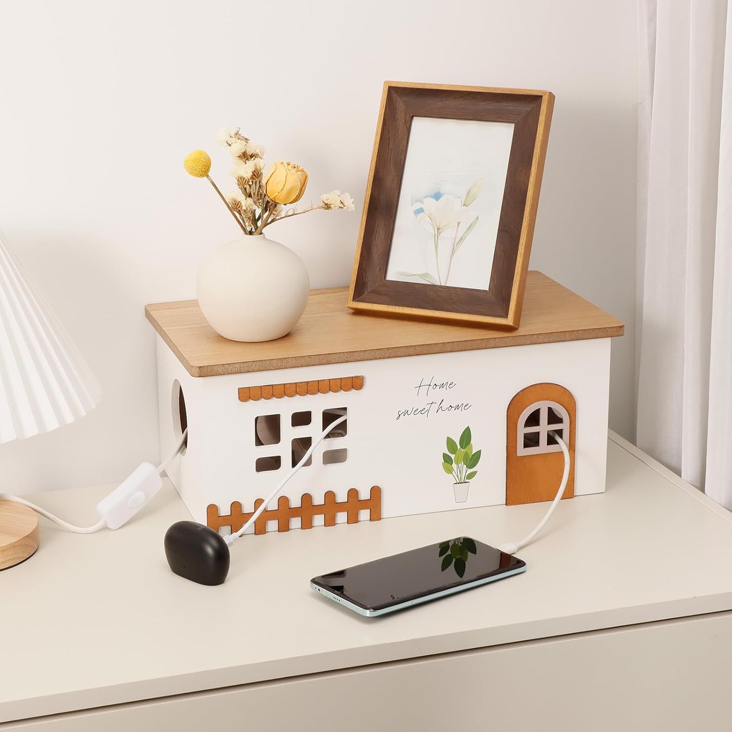 나무 보관 상자 데스크탑 와이어 보관 상자 전원 플러그 스트립 보드 정리 상자 홈 데스크탑 정리 상자 장식 상자스토어 가기