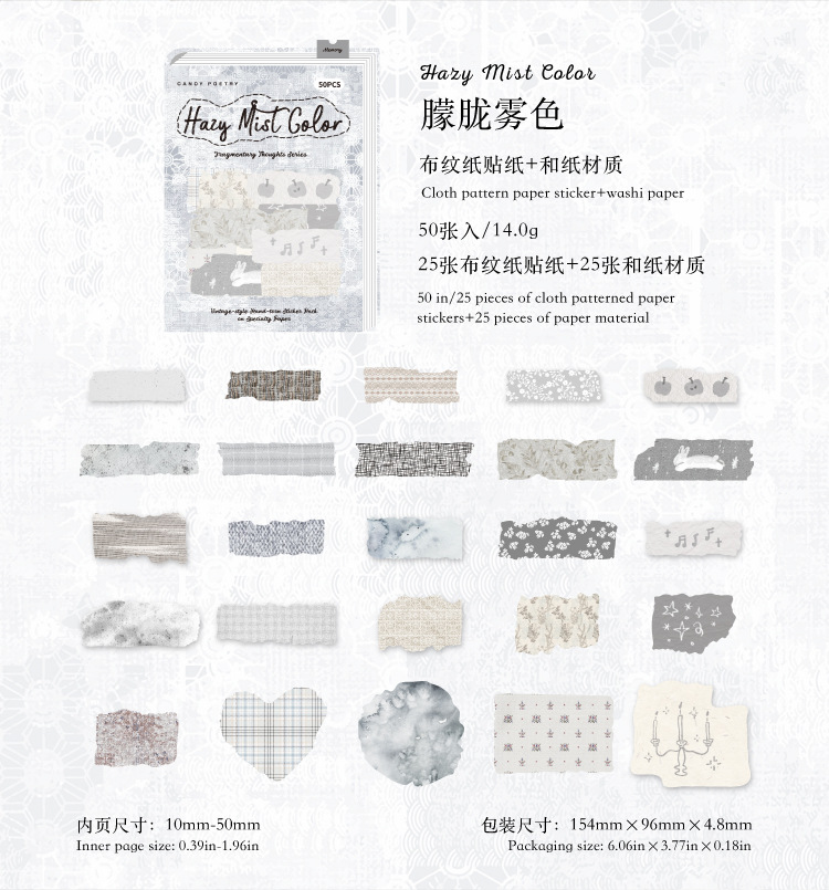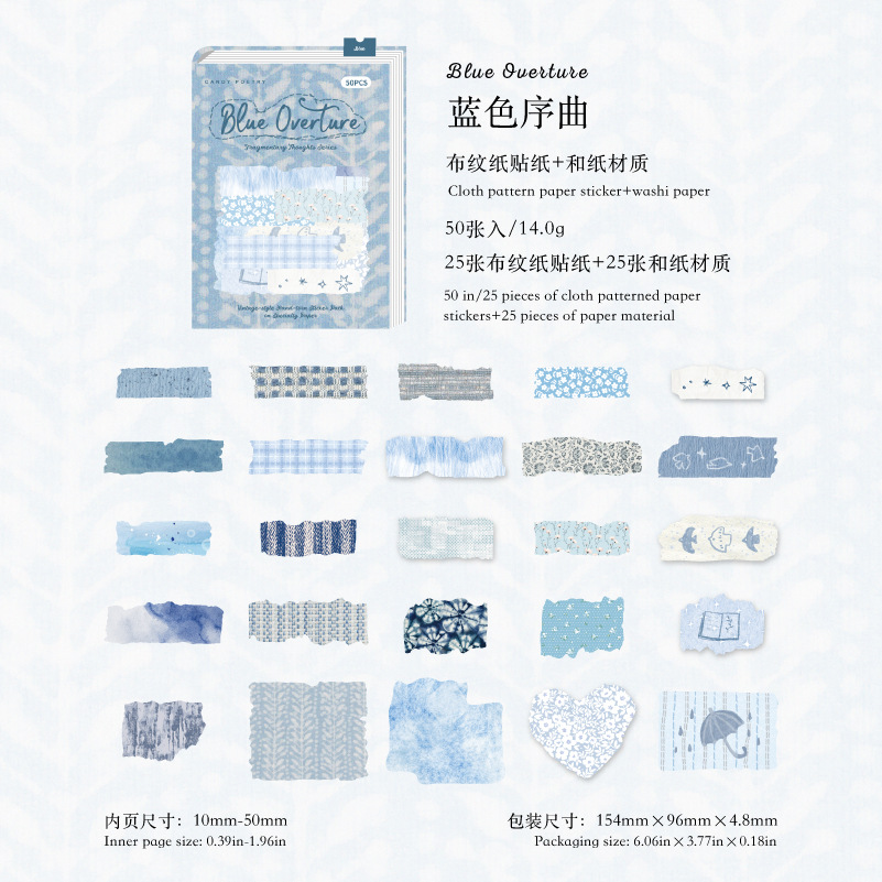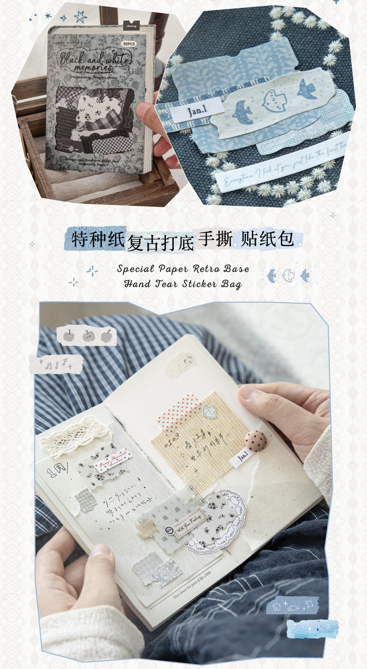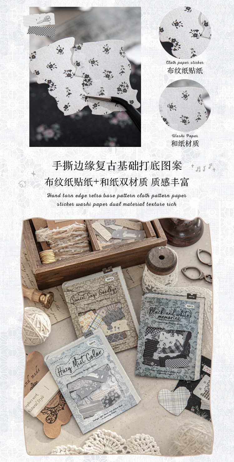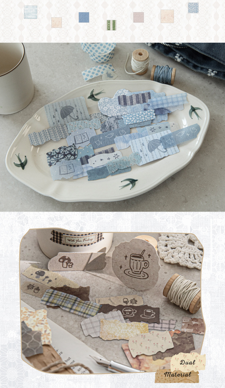 Sugar Poetry 더블팩 손으로 찢은 스티커 팩 잔해 패브릭 시리즈 핸드북 콜라주 소재 장식 베이스 6종스토어 가기