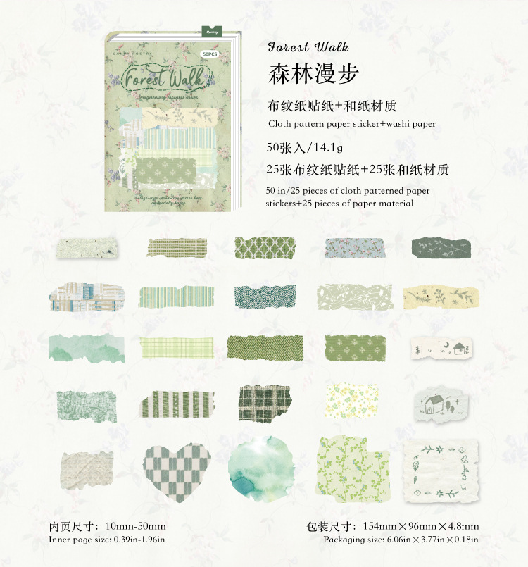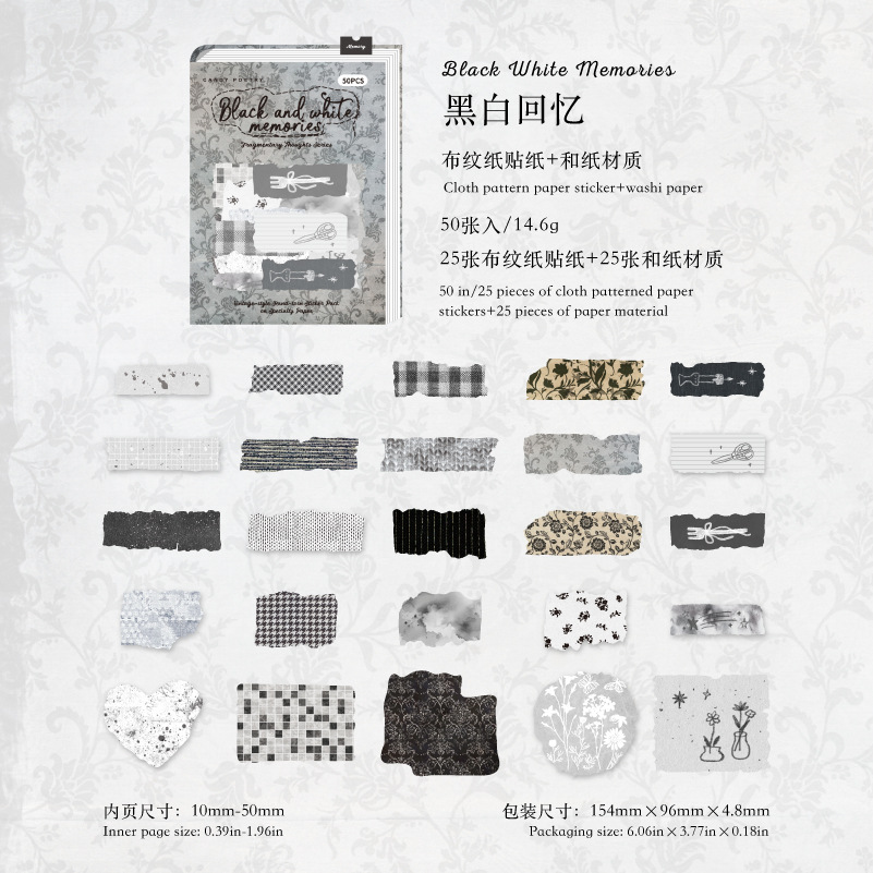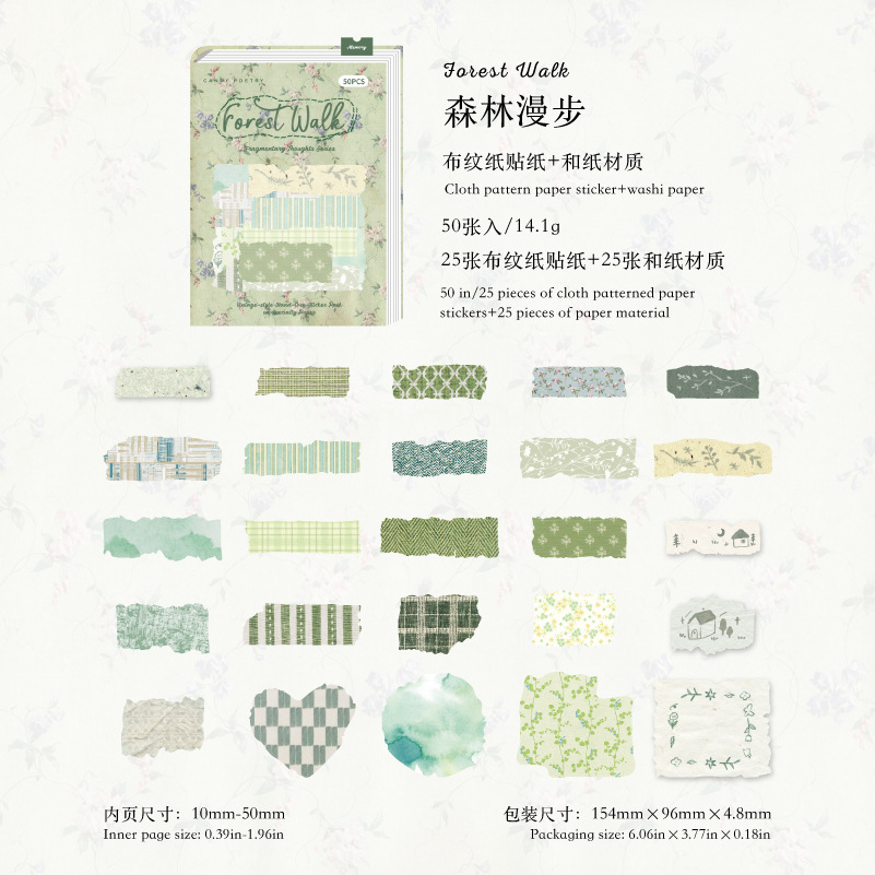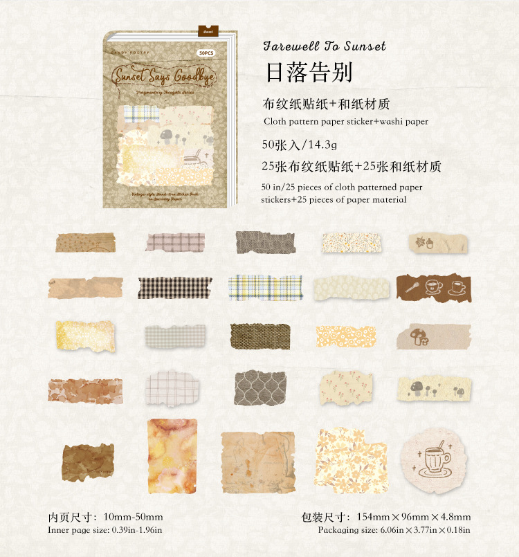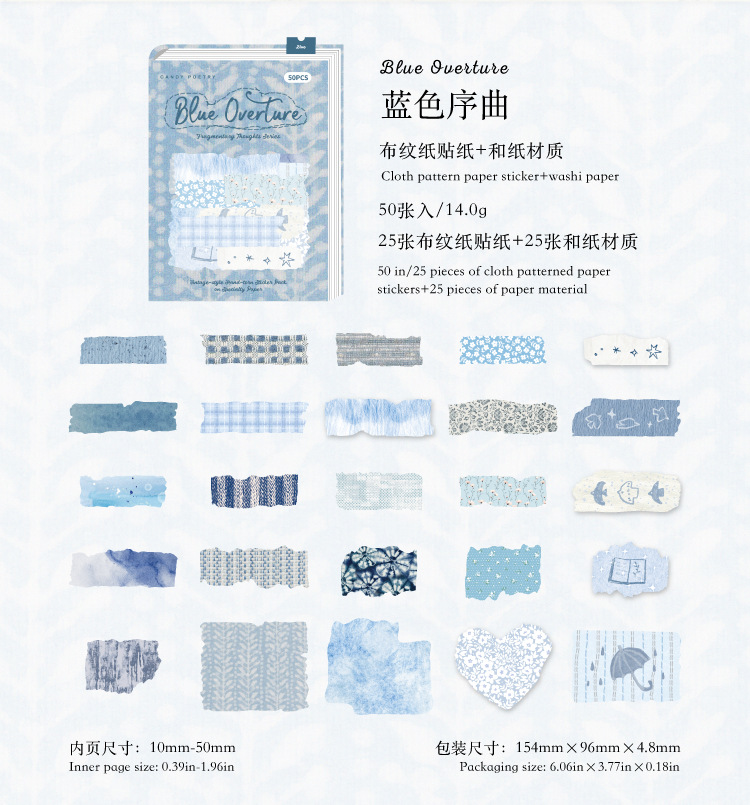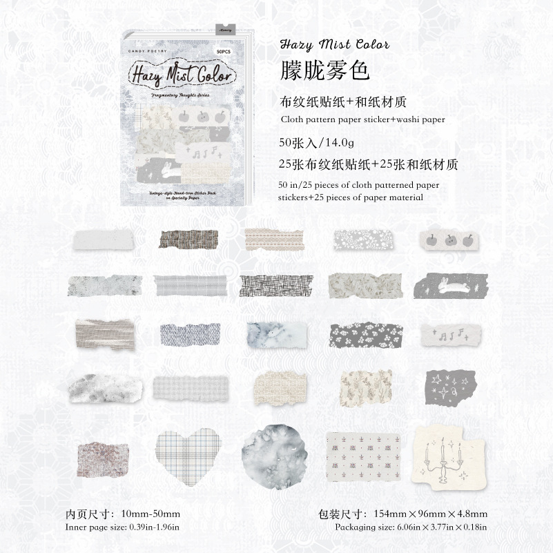 Sugar Poetry 더블팩 손으로 찢은 스티커 팩 잔해 패브릭 시리즈 핸드북 콜라주 소재 장식 베이스 6종스토어 가기