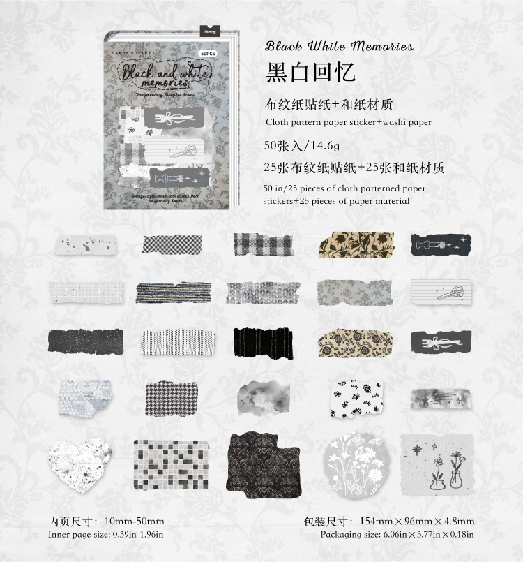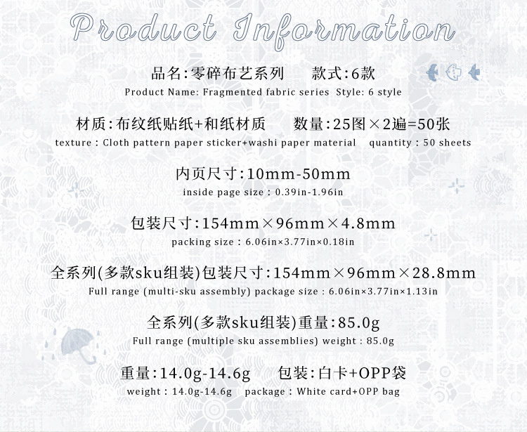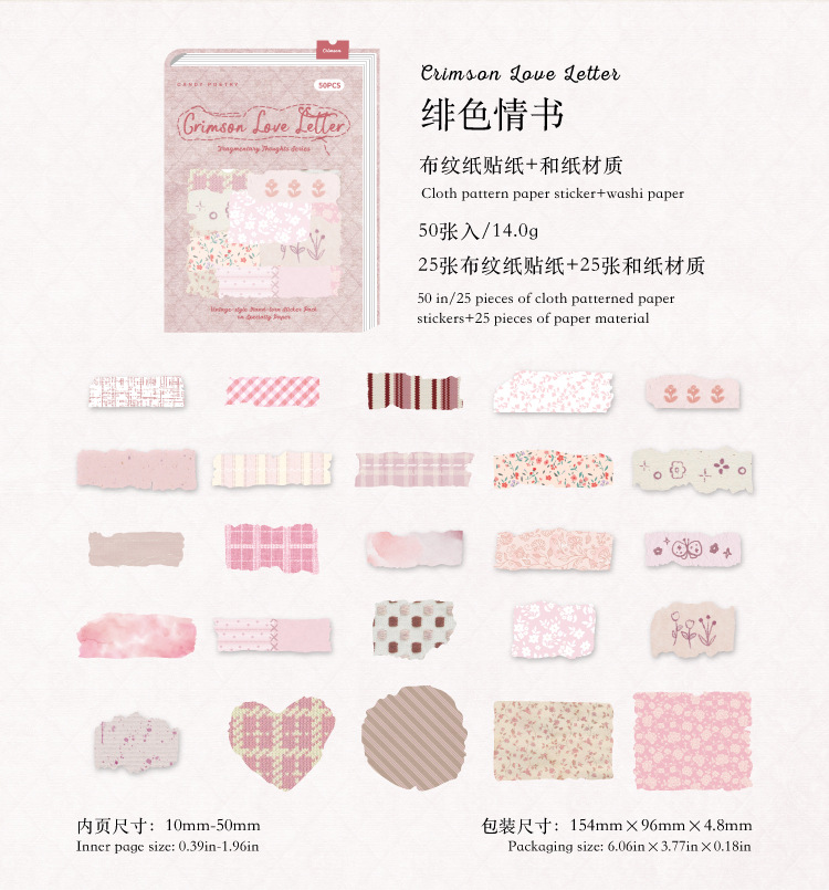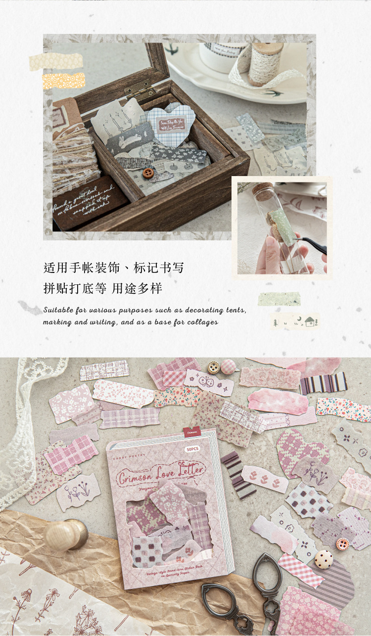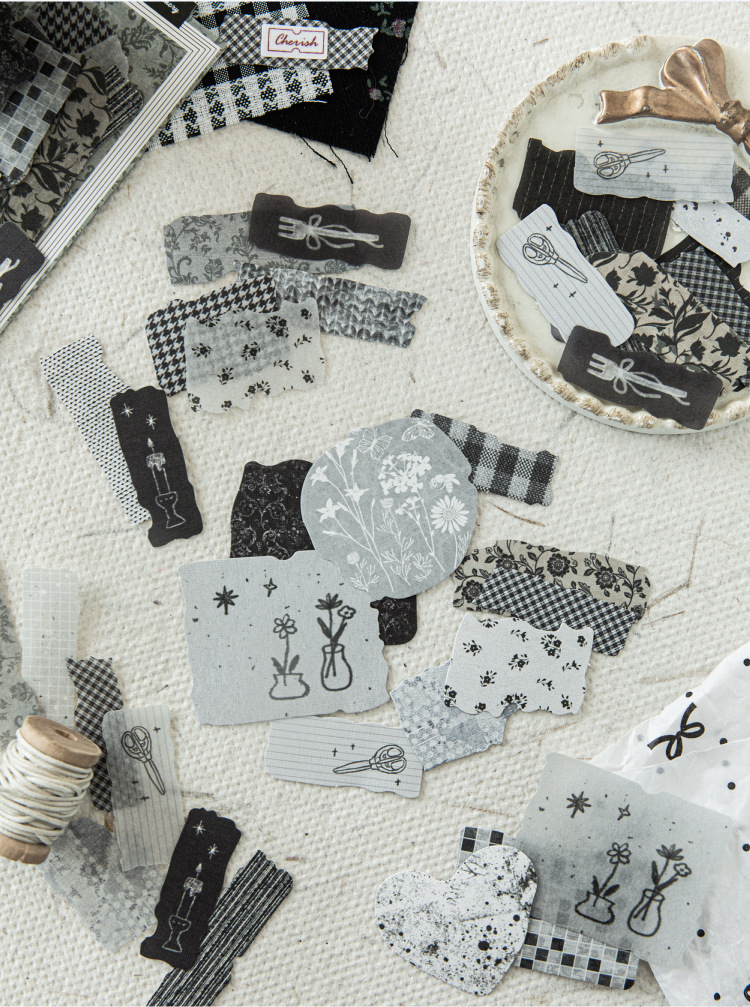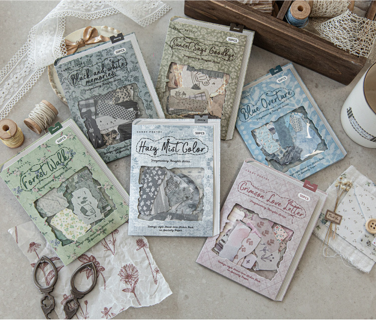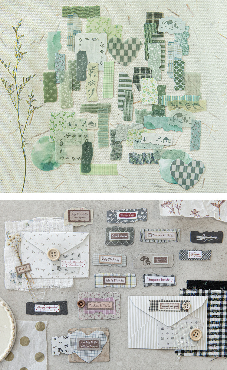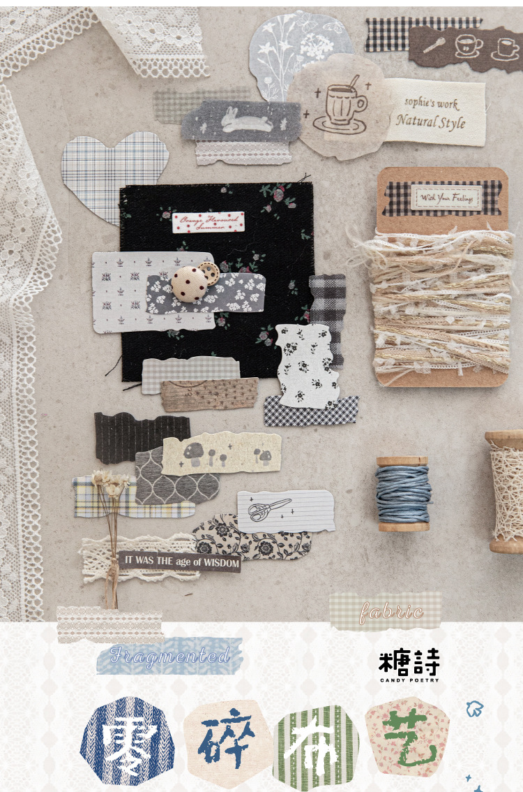 Sugar Poetry 더블팩 손으로 찢은 스티커 팩 잔해 패브릭 시리즈 핸드북 콜라주 소재 장식 베이스 6종