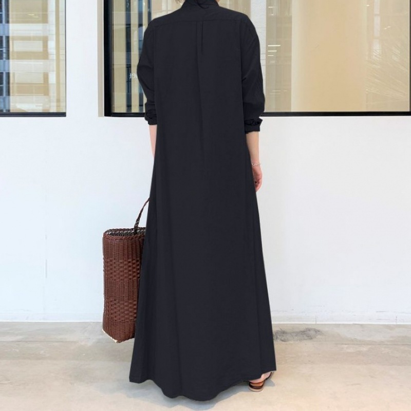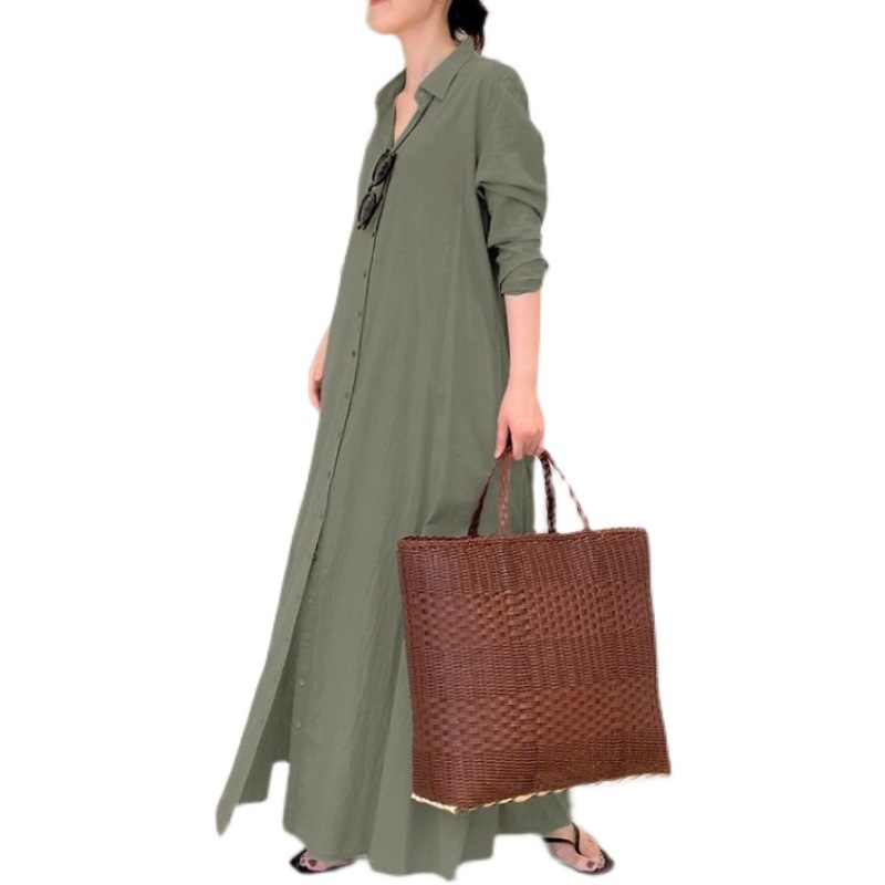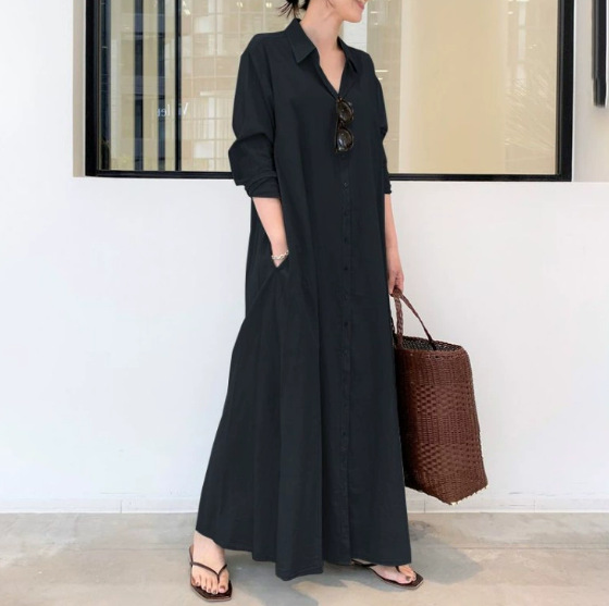 2025 봄, 가을 새로운 스타일 유럽과 미국 스타일의 솔리드 컬러 라펠 긴팔 포켓 심플 루즈 캐주얼 롱 셔츠 드레스