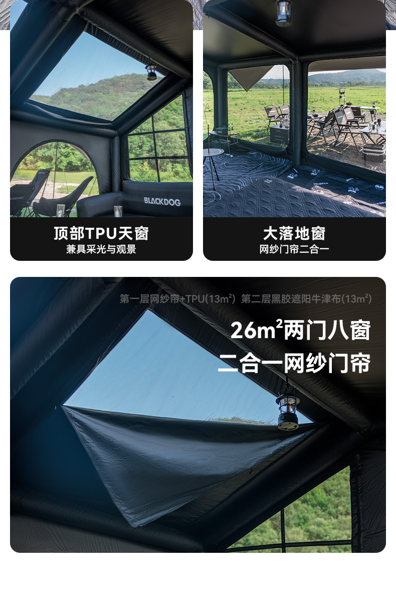 Blackdog 야외 자동 풍선 텐트 휴대용 밤새 침실 텐트 티타늄 검정색 비닐 방풍 및 방수 캠핑스토어 가기