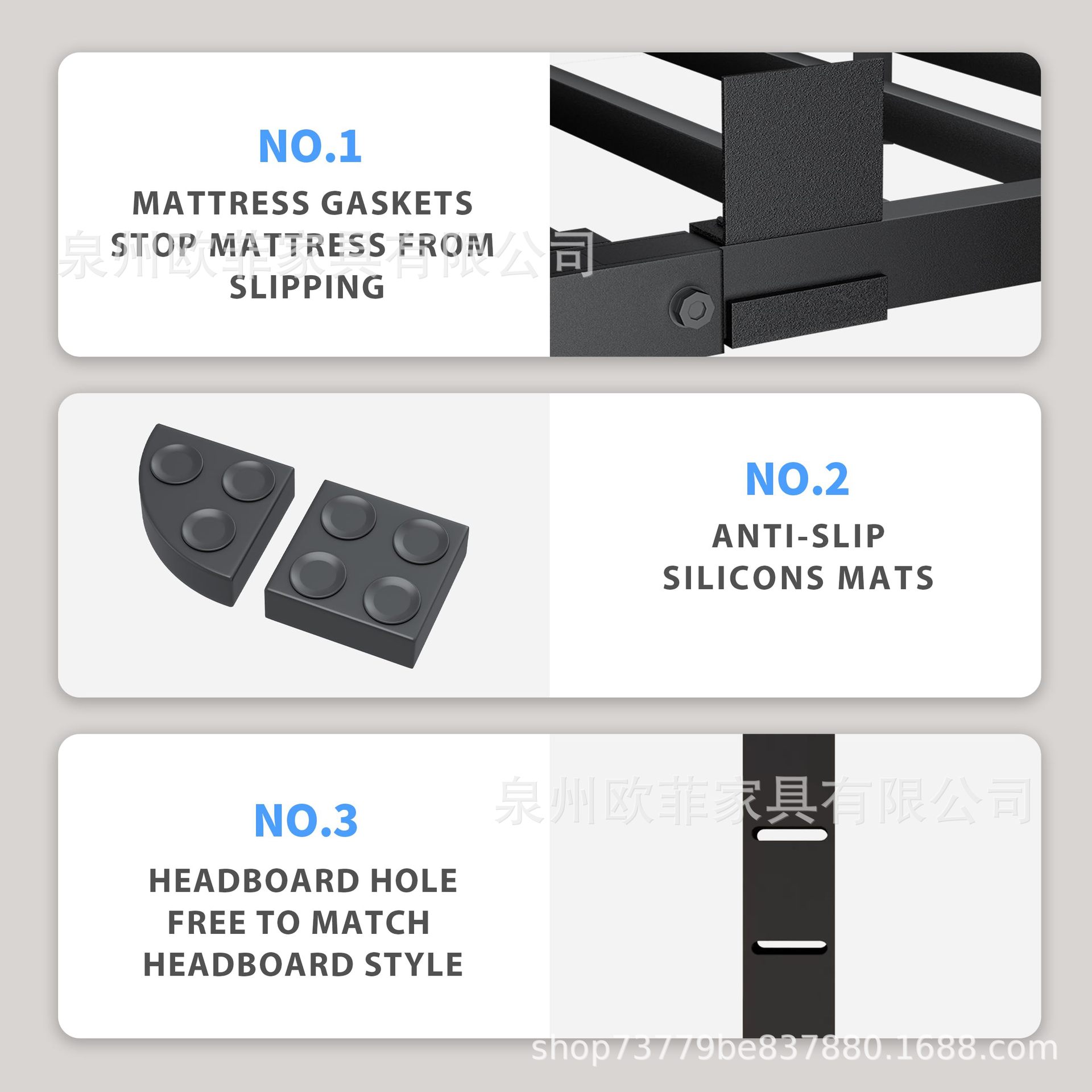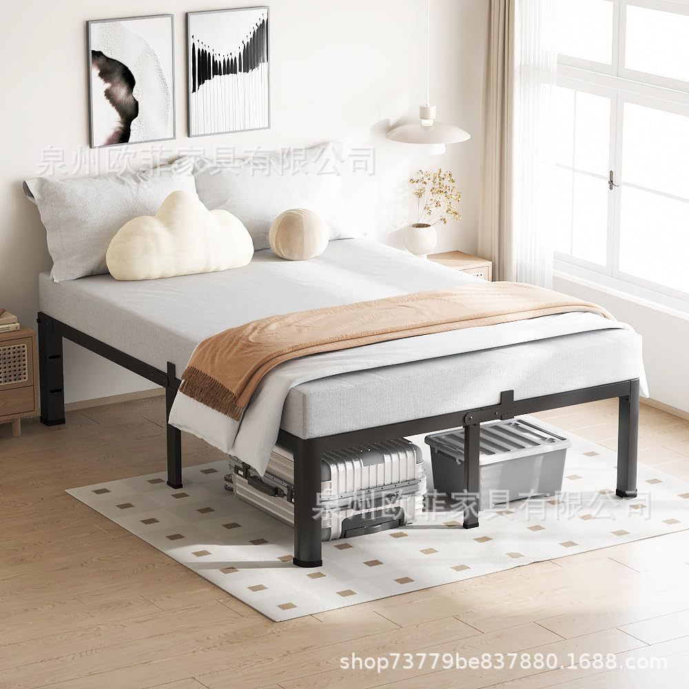 둥근 다리가 있는 크로스보더 아마존 두꺼운 대형 매트리스 슬라이딩 베젤 철제 침대 프레임, 강판 지지대스토어 가기