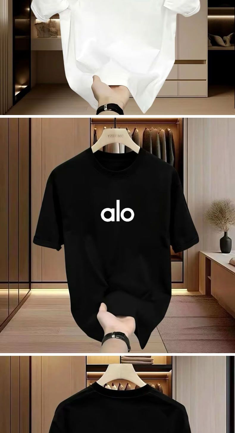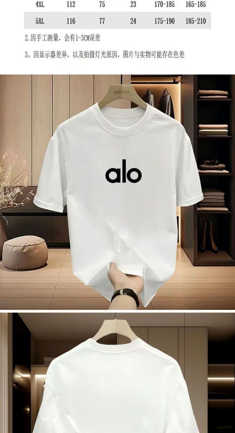 ALO 트렌디 여름 트렌디 브랜드 패션 레터 순면 반팔 티셔츠 남성과 여성 같은 스타일 남성 캐주얼 헤비급 라이트 럭셔리