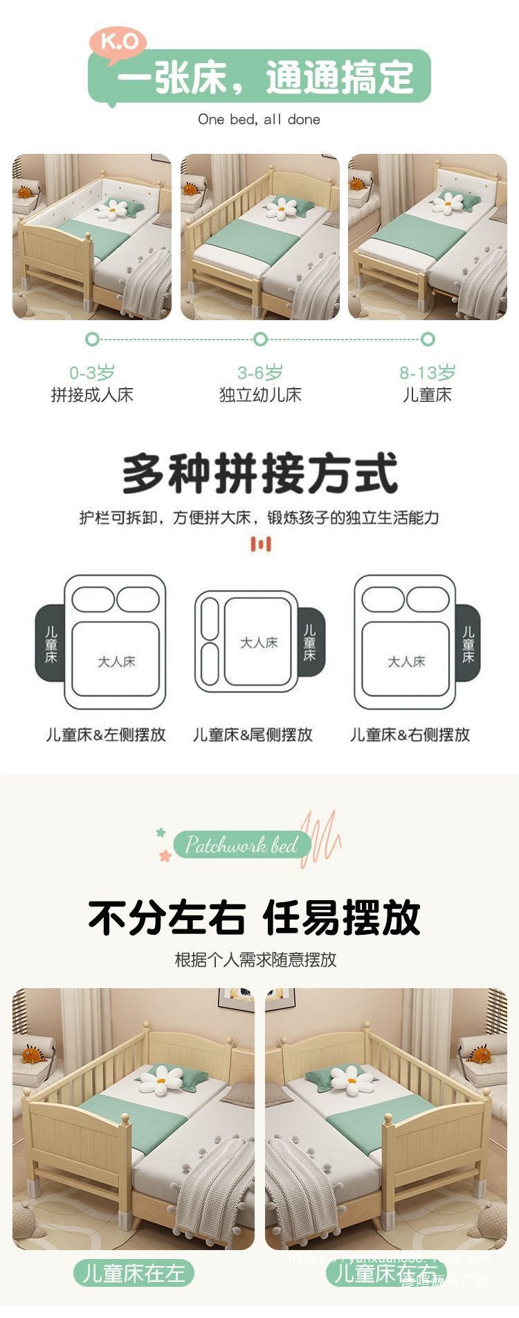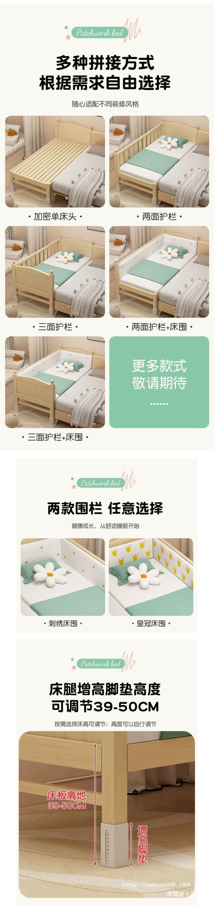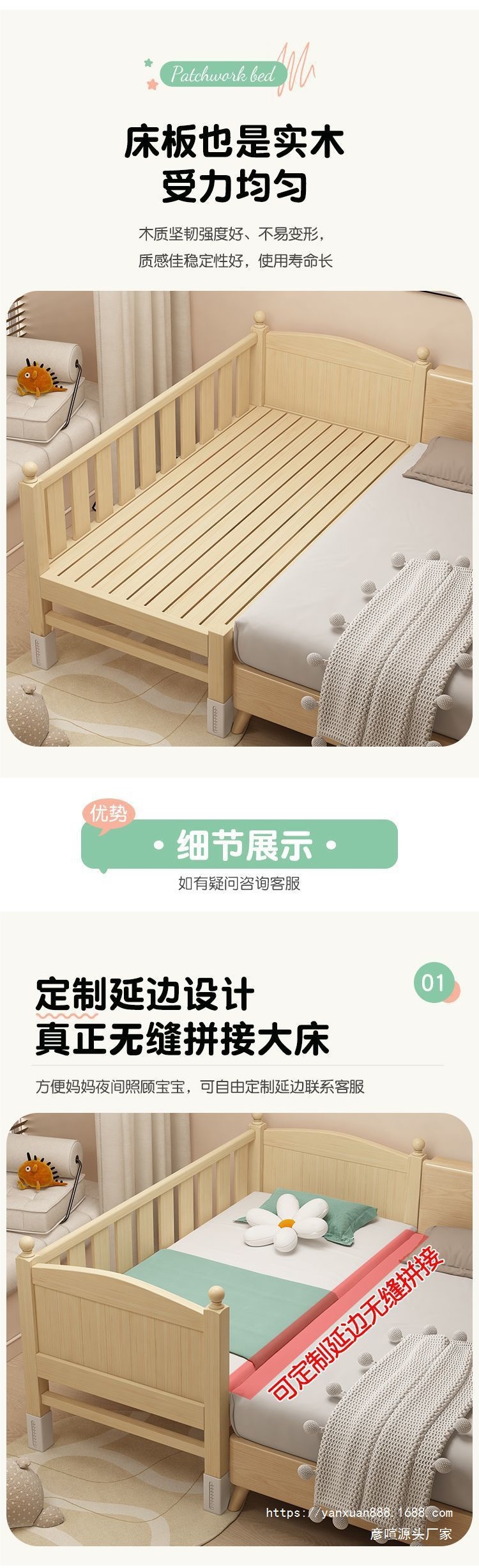 전체 단단한 나무 어린이 접합 침대 아기 침대 플러스 와이드 가드 레일 높이 조절 가능 소년 소녀 침대 크로스 보더스토어 가기