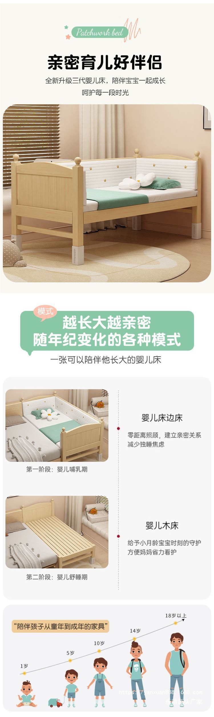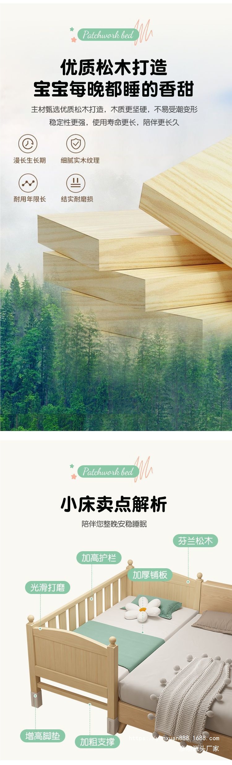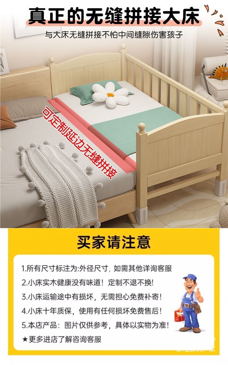 전체 단단한 나무 어린이 접합 침대 아기 침대 플러스 와이드 가드 레일 높이 조절 가능 소년 소녀 침대 크로스 보더스토어 가기