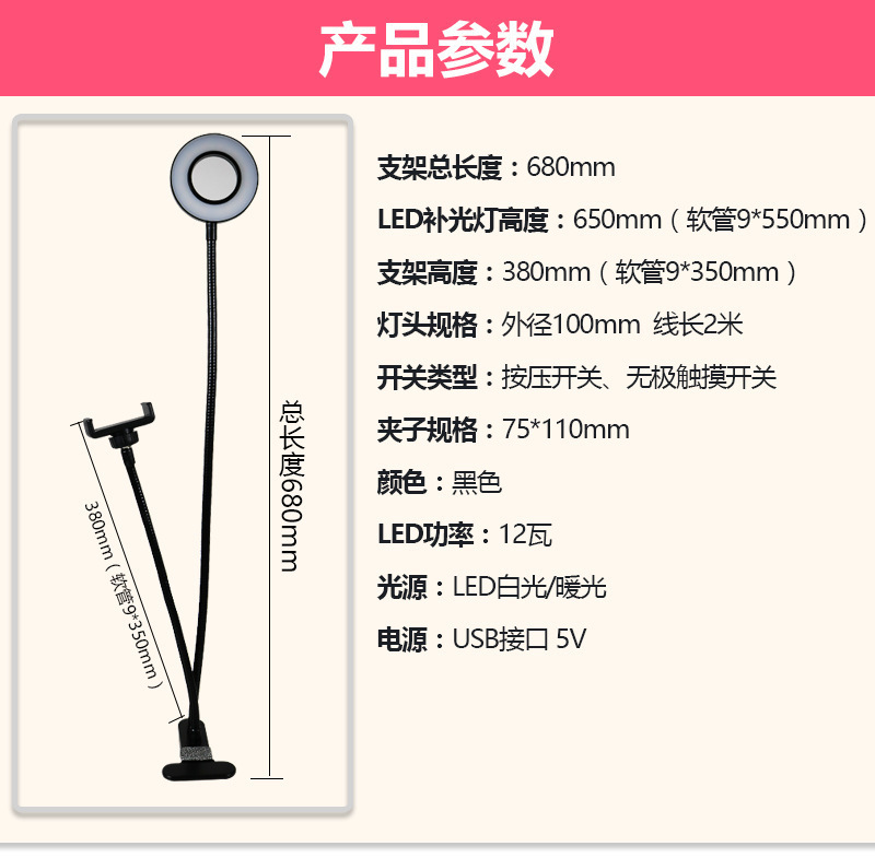 틱톡 클립형 테이블 램프, 휴대폰 드라마 감상 스탠드, 라이브 방송 보조 조명, 문신/화장/미용 램프, 해외 인기 상품, 눈 보호