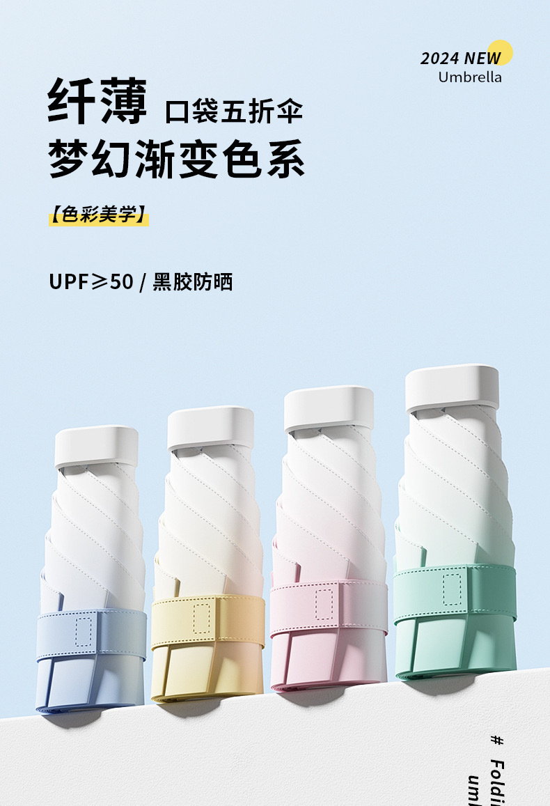 50% off 그라디언트 미니 태양 우산 패션 컴팩트 태양 우산 비닐 태양 보호 포켓 캡슐 우산 도매