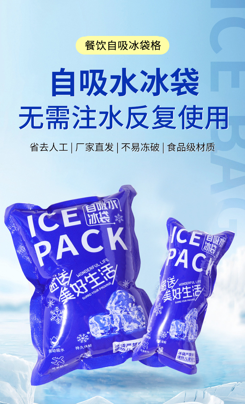 특급 냉동용 자흡식 아이스백, 재사용 가능한 일회용 상업용 운송, 신선도 유지, 물이 채워진 냉장 아이스백