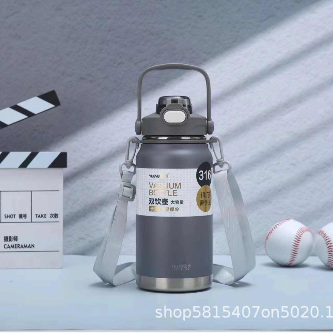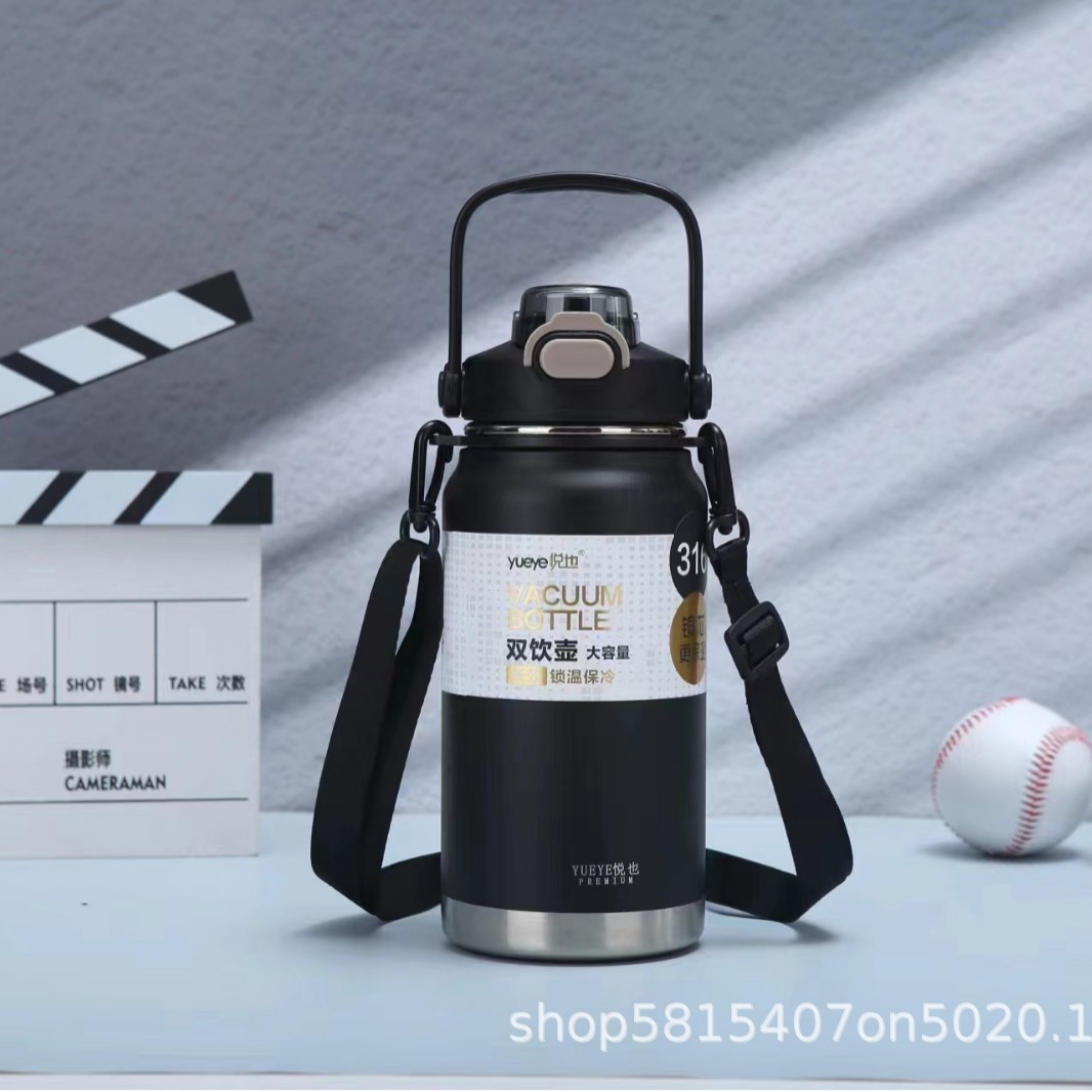 Yueye 316 스테인레스 스틸 절연 컵 휴대용 손잡이 바운스 더블 마시는 밀짚 컵 야외 등산 스포츠 물병