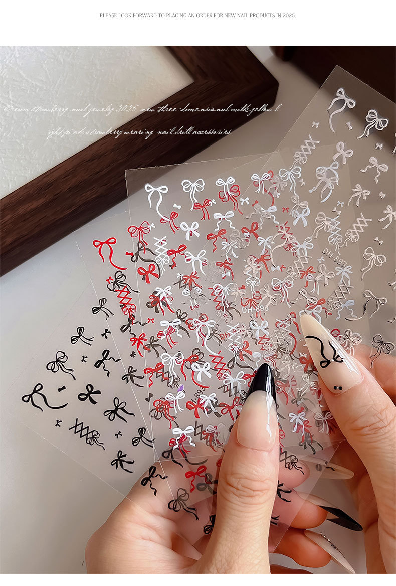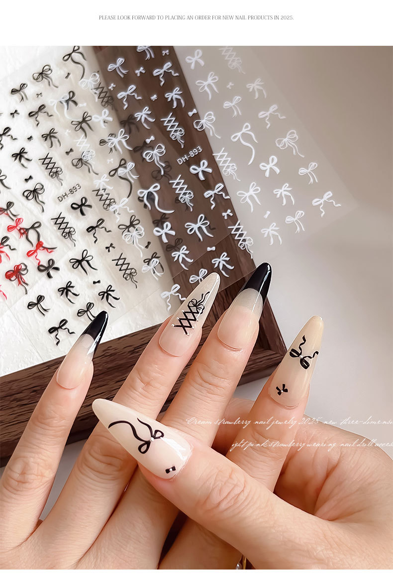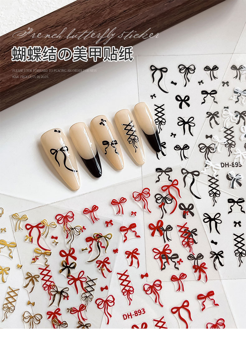 새로운 리본 나비 매니큐어 스티커 슈퍼 요정 순수한 욕망 발레 신발 리본 접착제 네일 스티커 장식 도매