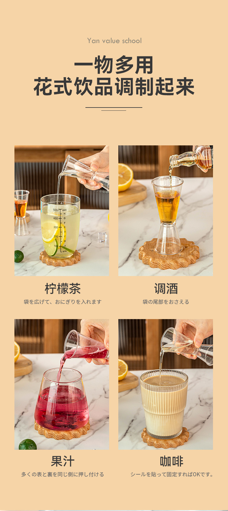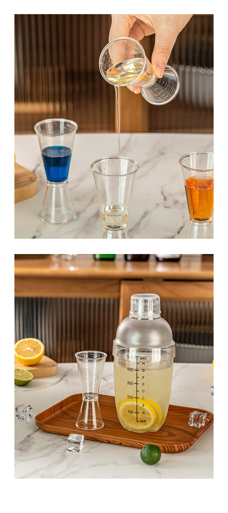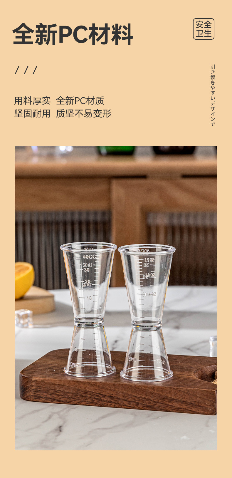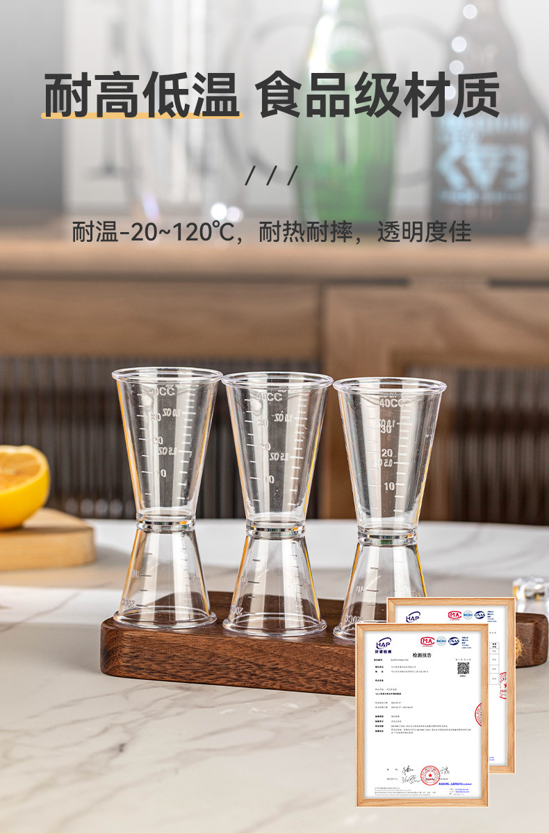 우유 차 특수 PS 수지 온스 컵 양방향 측정 컵 20/40CC 식품 등급 플라스틱 눈금 컵이있는 측정 컵