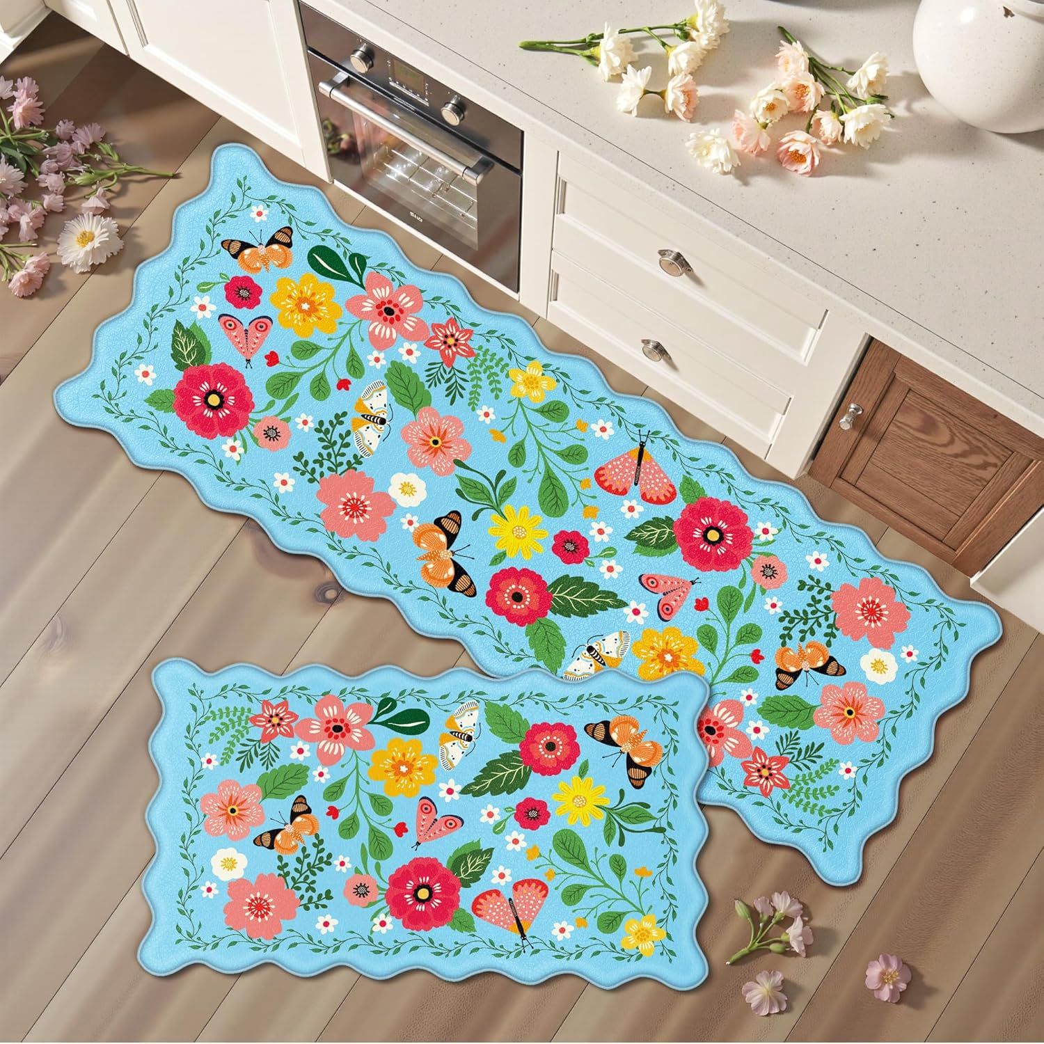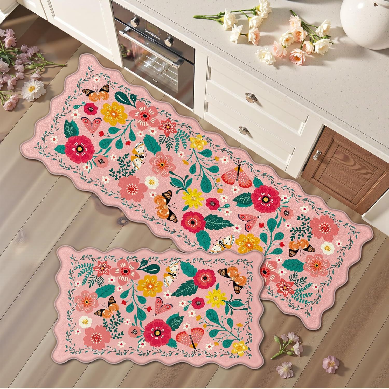 주방 바닥 매트 크로스보더 미국 꽃무늬 투피스 바닥 매트 흡수성 미끄럼 방지 홈 레스토랑 바닥 매트 관리가 용이 도매스토어 가기