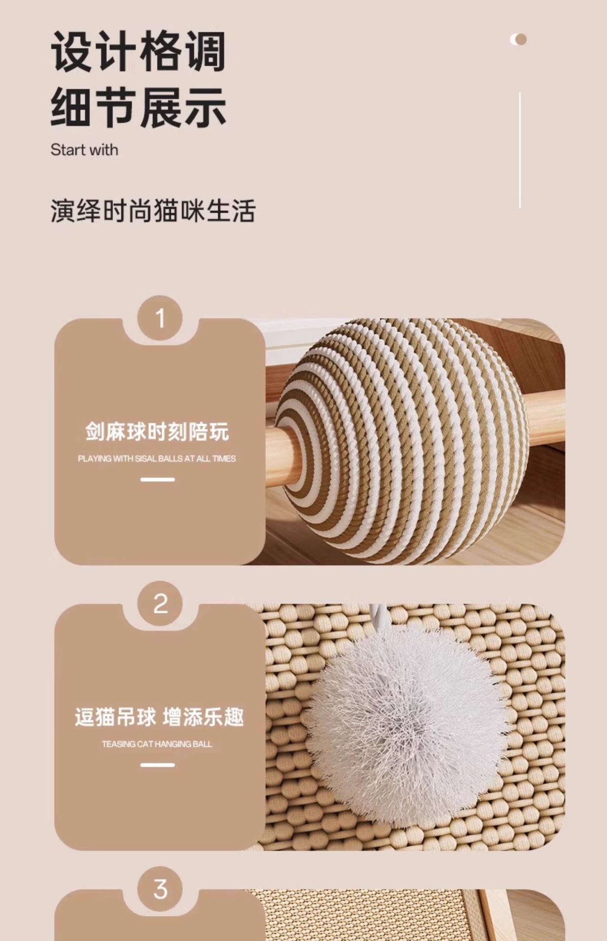 • [원목 사이잘 스타일] 강화된 60CM 프리 캣 스크래치 볼 [내마모성, 긁힘 방지 및 부스러기 없음]