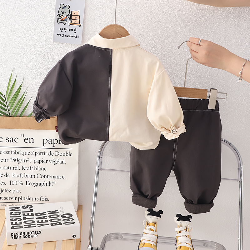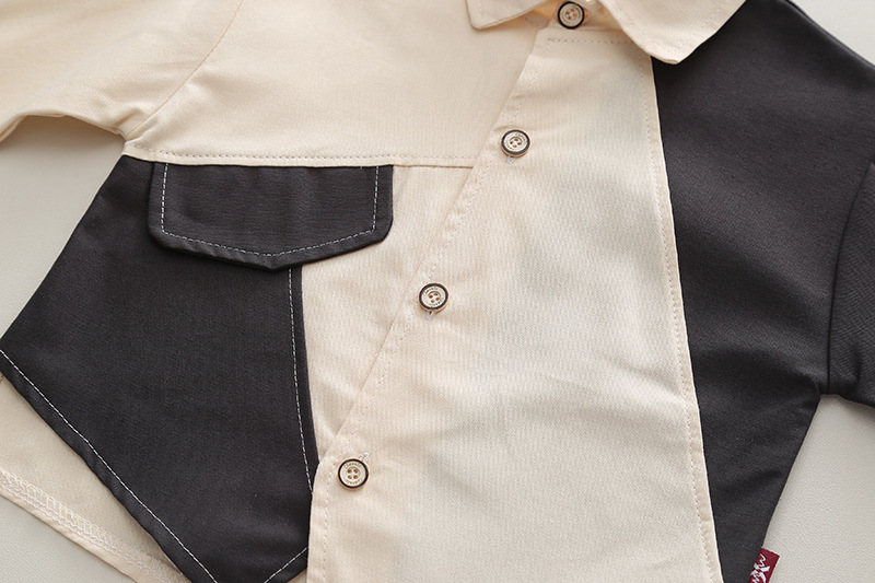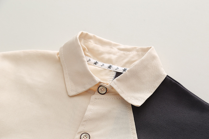 • 다크 그레이 긴팔 컬러 블록 셔츠 정장