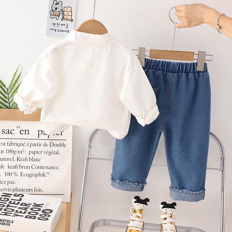 • 흰색 세 마리 동물 셔츠 데님 슈트