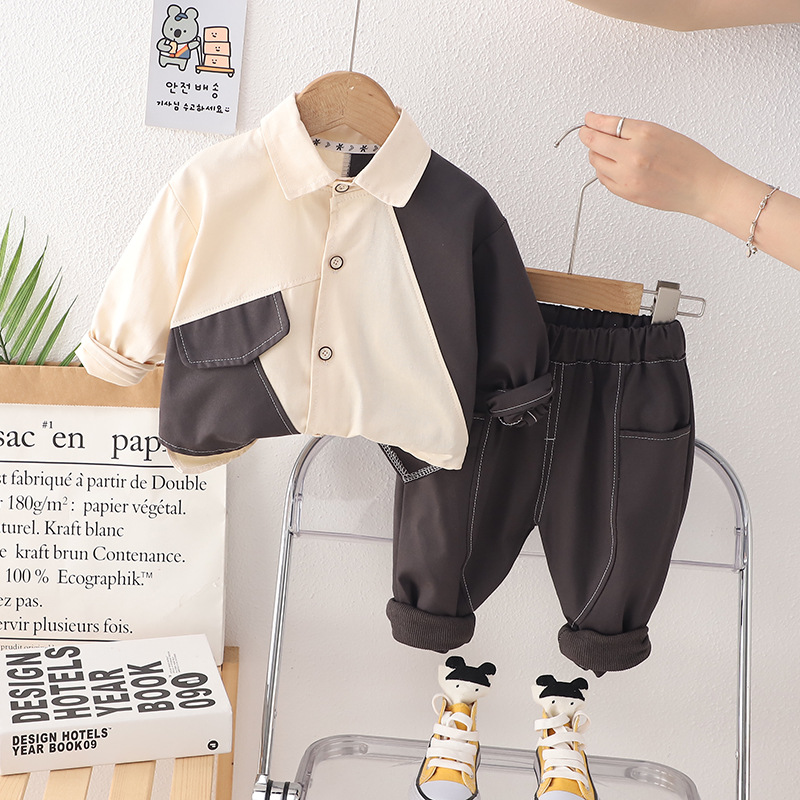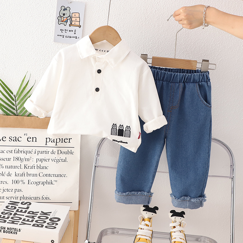 소년 가을 의류 세트 2024 새로운 아기 한국어 스타일 아기 소년 봄, 가을 세 동물 셔츠 투피스 세트