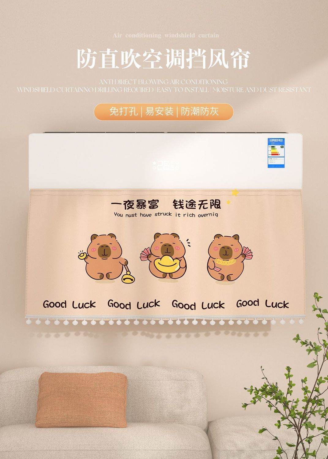 산후 아기 방풍 에어컨 앞유리 커튼 직선 바람 방지 가정용 벨크로 펀치 프리 앞유리 천 앞유리 새로운 스타일스토어 가기