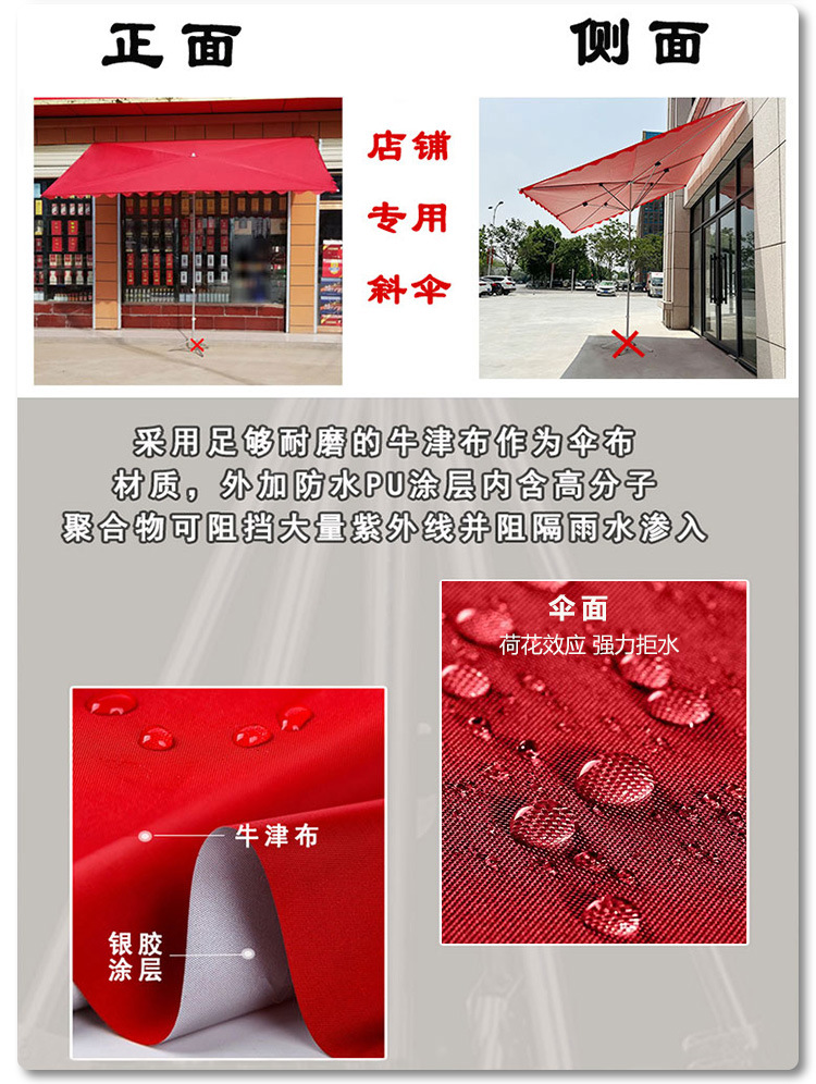 파라솔 야외 매점 상업용 경사 우산 상점 사각형 접이식 경사 대형 태양 우산 두꺼운 천막스토어 가기