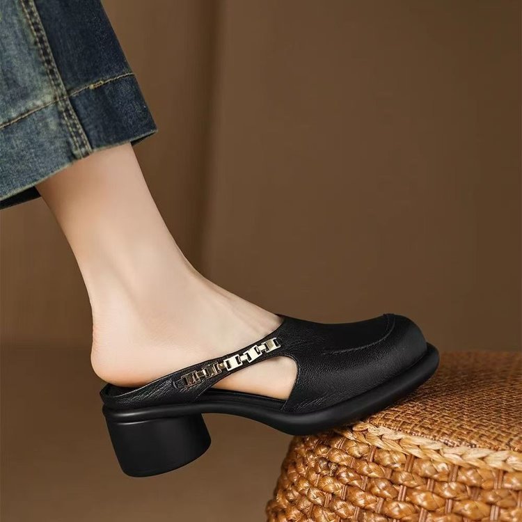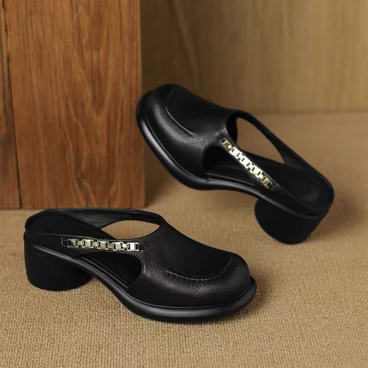 여성용 여름 아우터 슬리퍼, 매우 부드러운 양가죽, 아름다운 두꺼운 굽의 뮬 슈즈, 하이힐 샌들, 두꺼운 밑창 샌들, 발가락 반슬리퍼