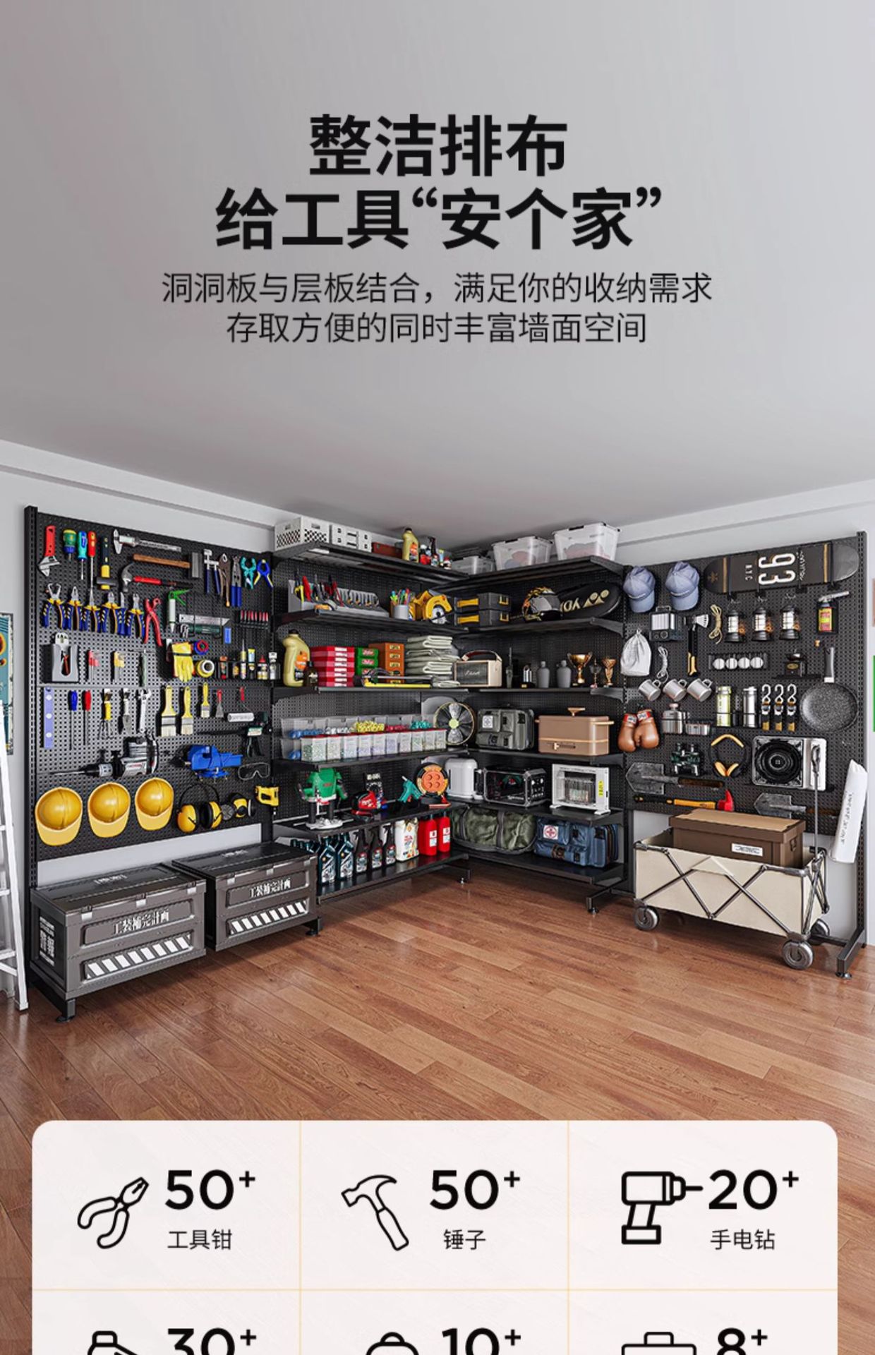 홀 보드 야외 장비 보관 벽 사이클링 캠핑 벽걸이 선반 선반 바닥에서 천공 없이 수직 랙