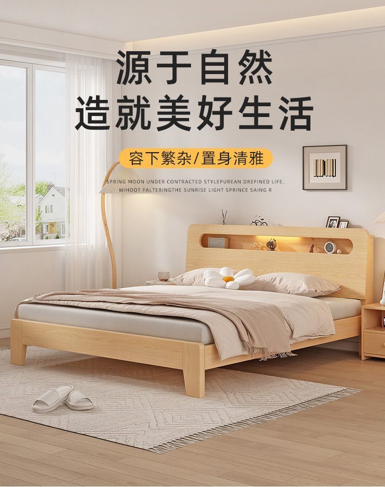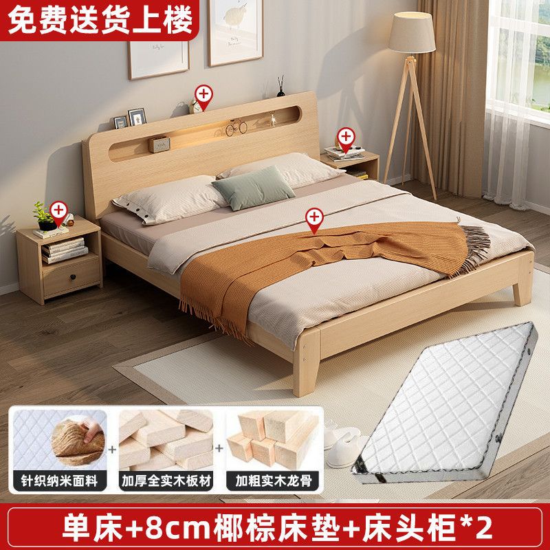 단단한 나무 침대 1.5m 가정용 1.8m 더블 침대 간단한 현대 임대 집 경제적 인 1.2m 싱글 침대 프레임스토어 가기