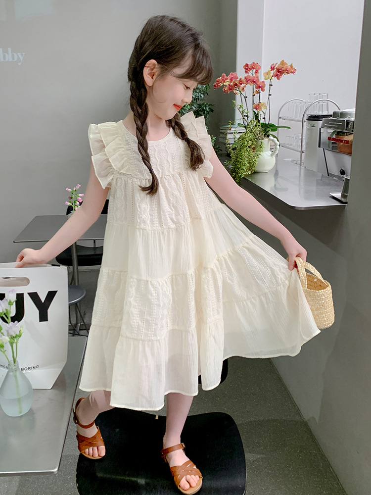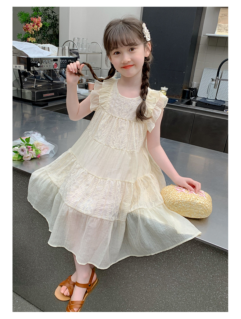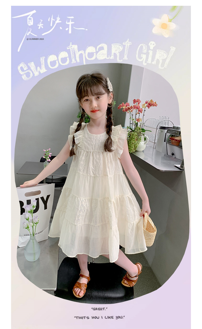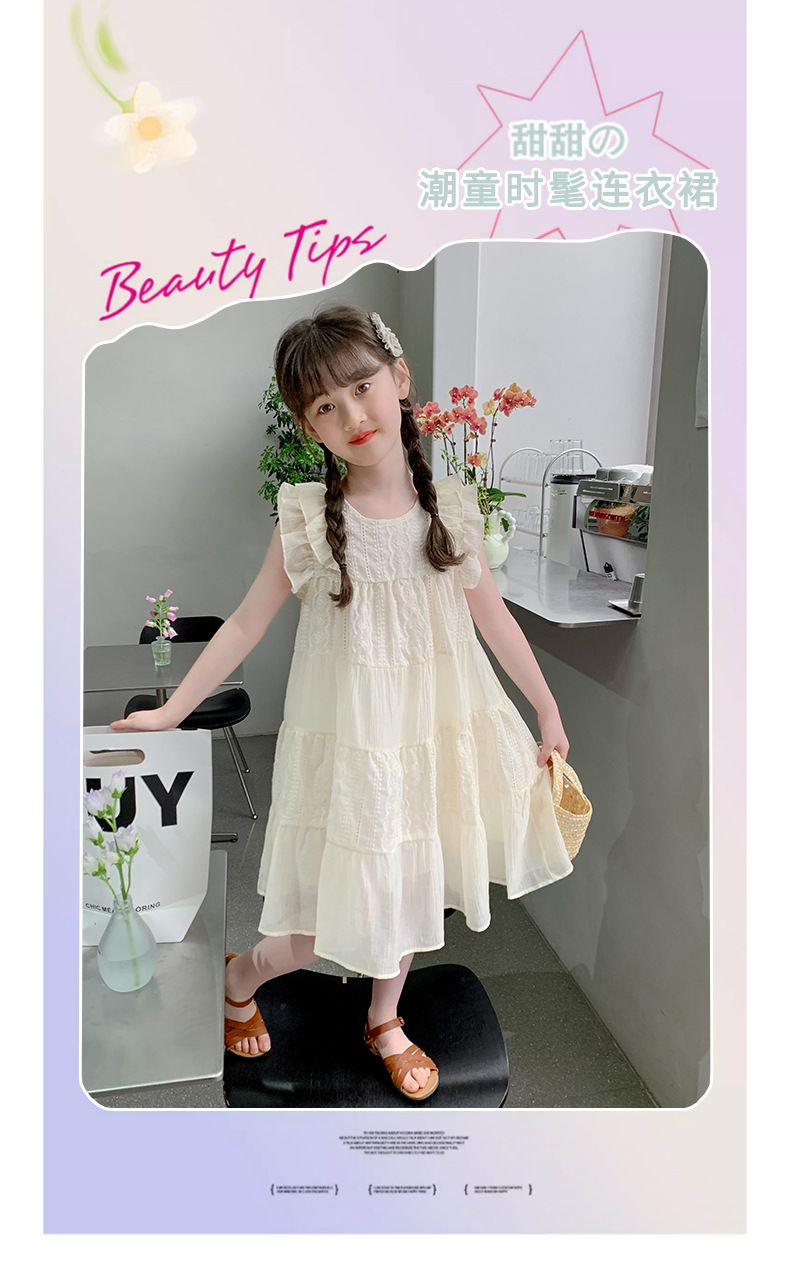 여자 여름 드레스 2025 새로운 어린이 스타일 달콤한 여자 여름 조끼 공주 스커트