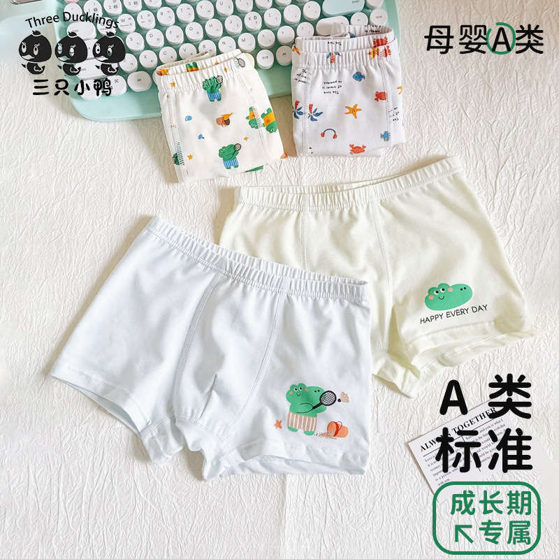 세 마리의 작은 오리 어린이 해변 악어 만화 속옷 소년 순수 코튼 복서 반바지 소년 보물 통기성스토어 가기