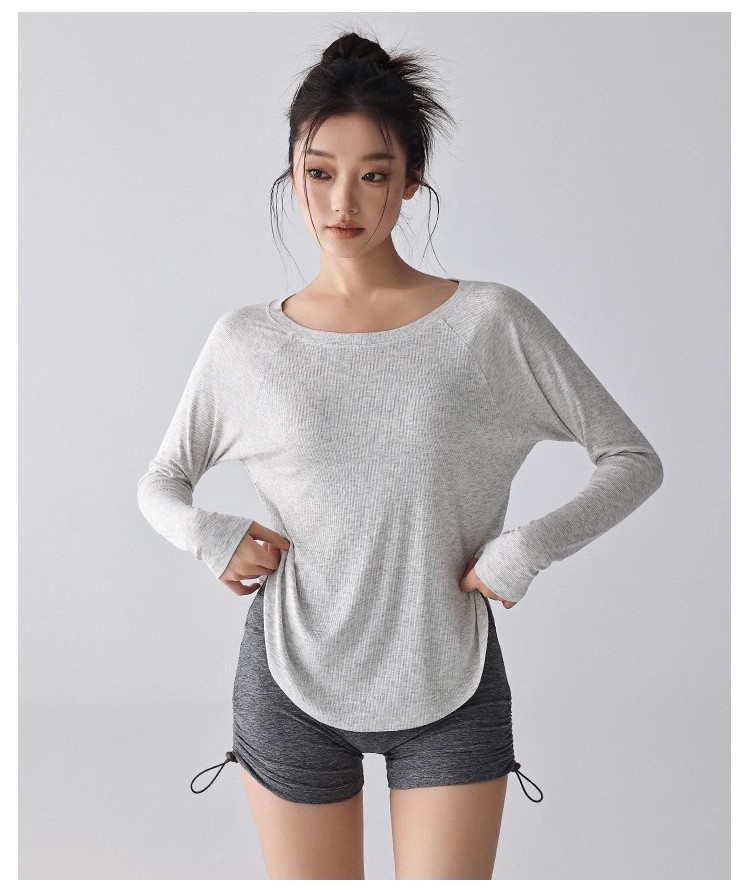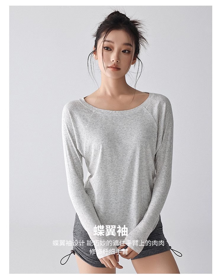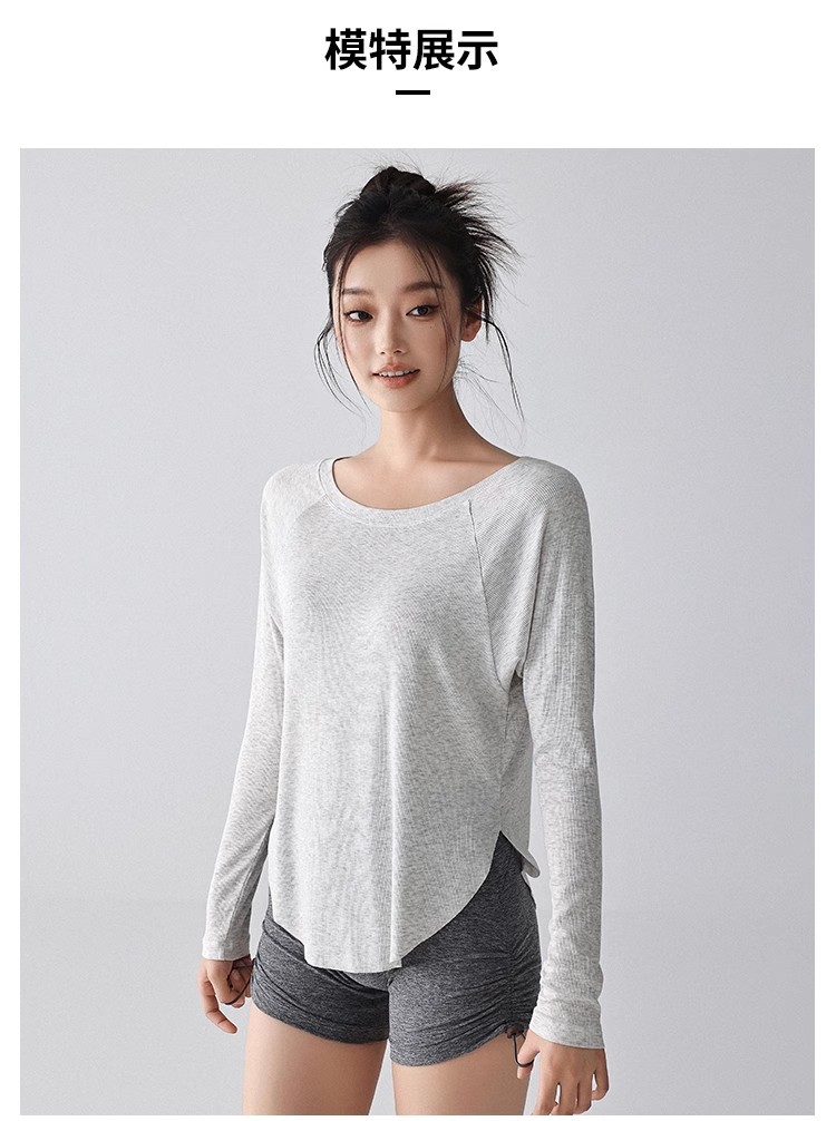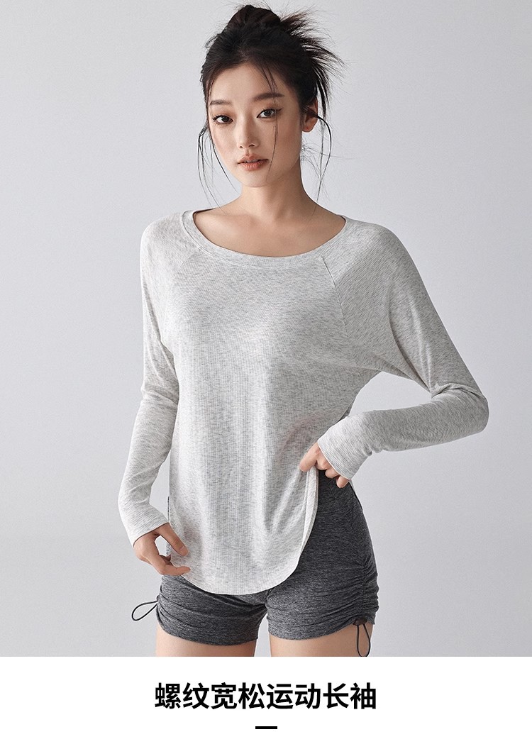 2025 여성용 새로운 누드 요가복, 루즈하고 섹시한 오프숄더 요가탑, 캐주얼 드레이프 스포츠 긴팔스토어 가기