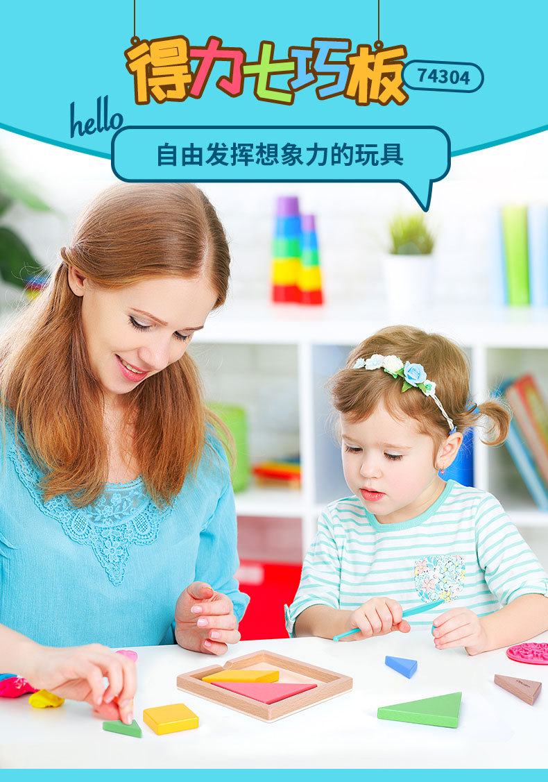 델리 탱그램 1학년 초등학생을 위한 나무 지능 퍼즐, 유치원 어린이 장난감, 학생을 위한 교육 보조 도구스토어 가기