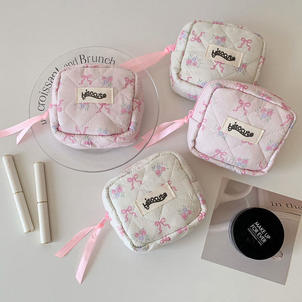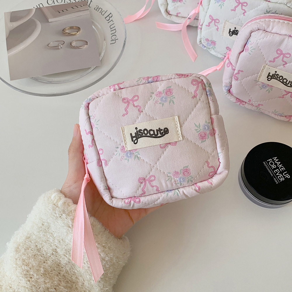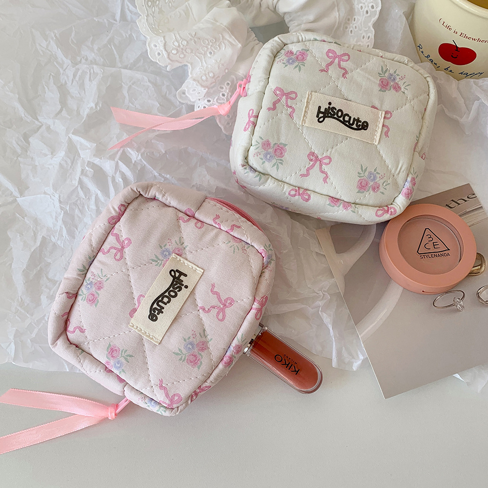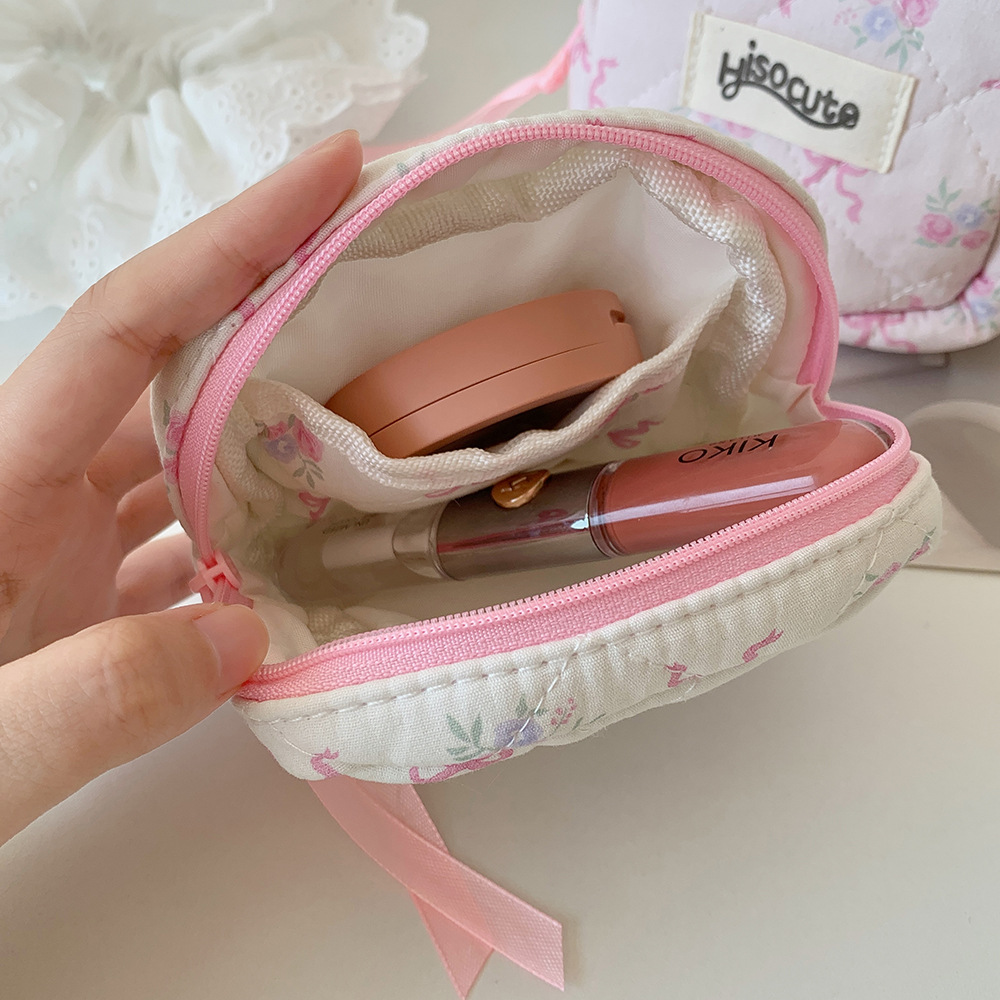 고급스러운 리본 화장품 가방, 귀여운 여성용 휴대용 세면도구 가방, 동전 지갑, 소녀용 립스틱 보관 가방