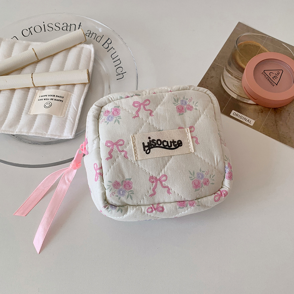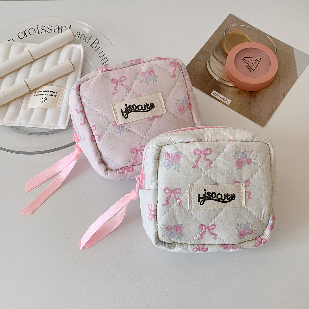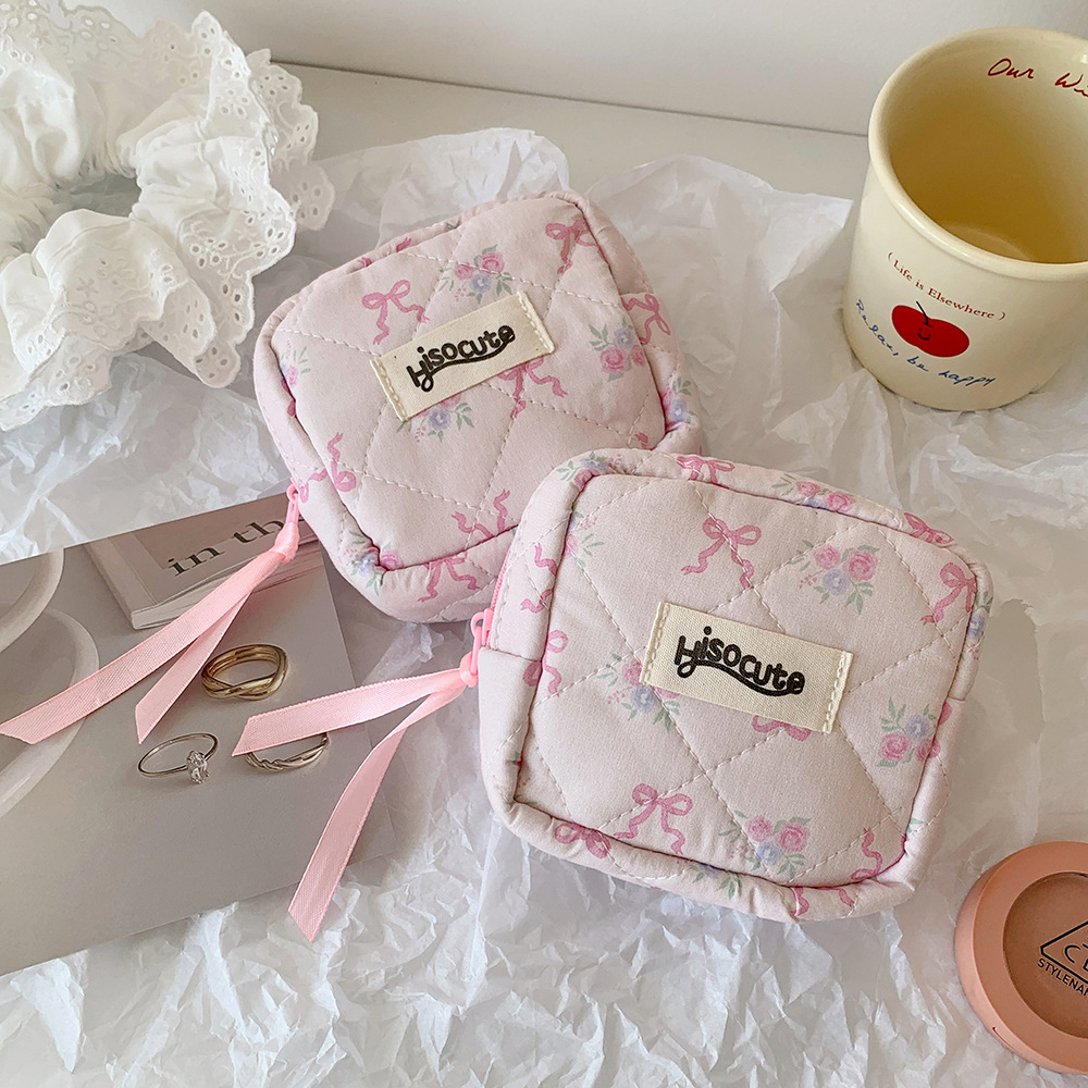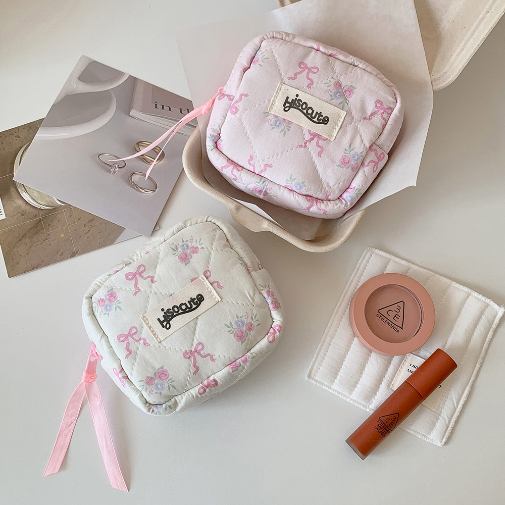 고급스러운 리본 화장품 가방, 귀여운 여성용 휴대용 세면도구 가방, 동전 지갑, 소녀용 립스틱 보관 가방