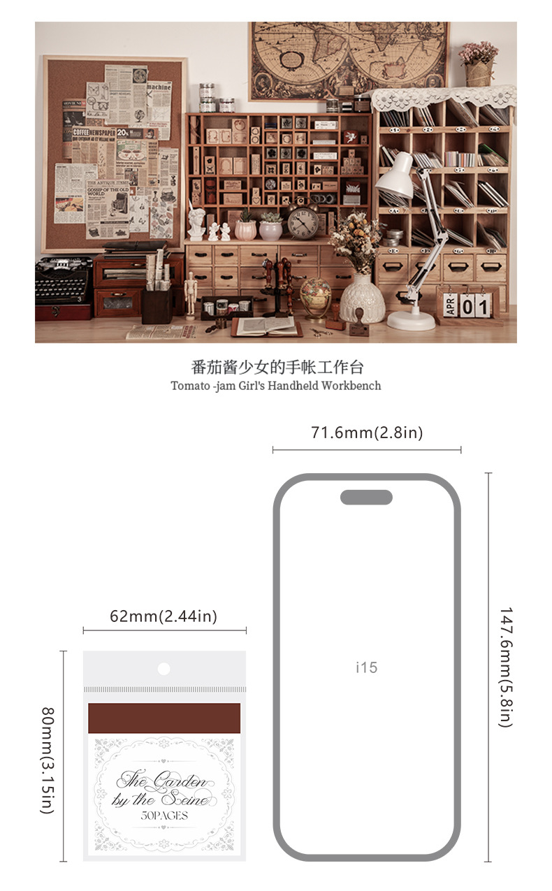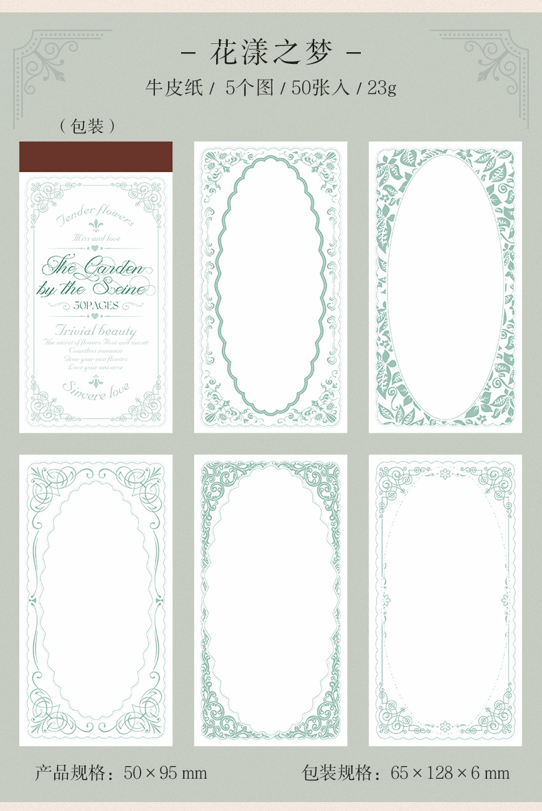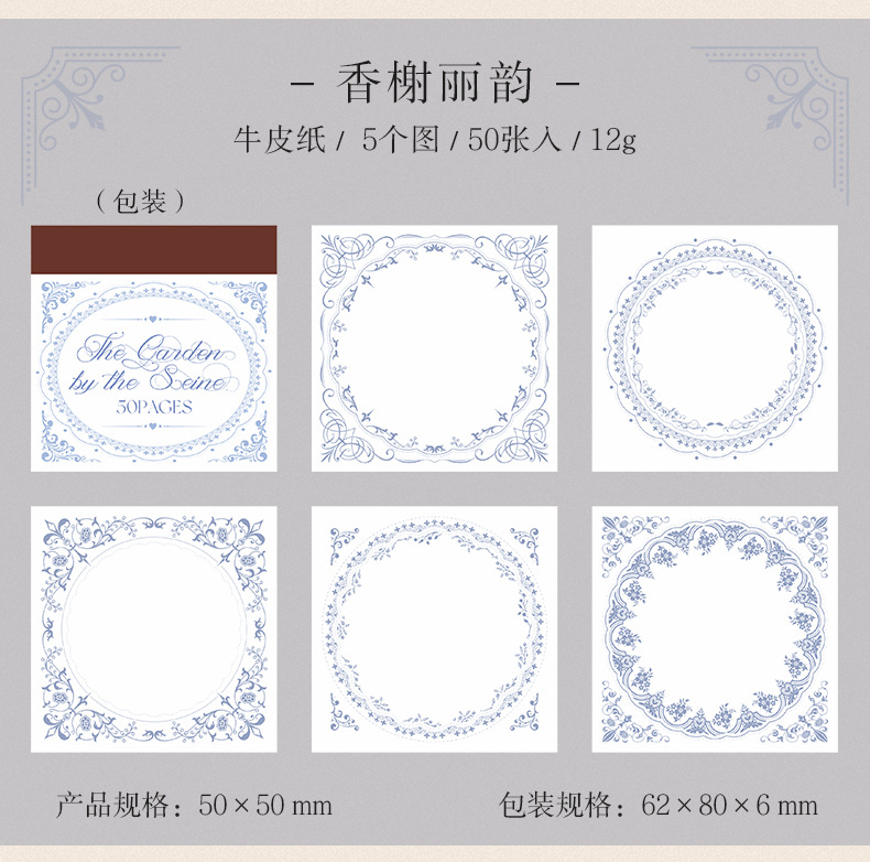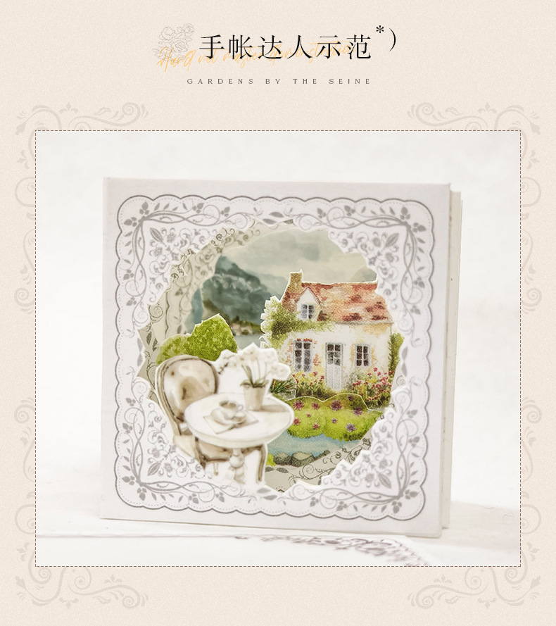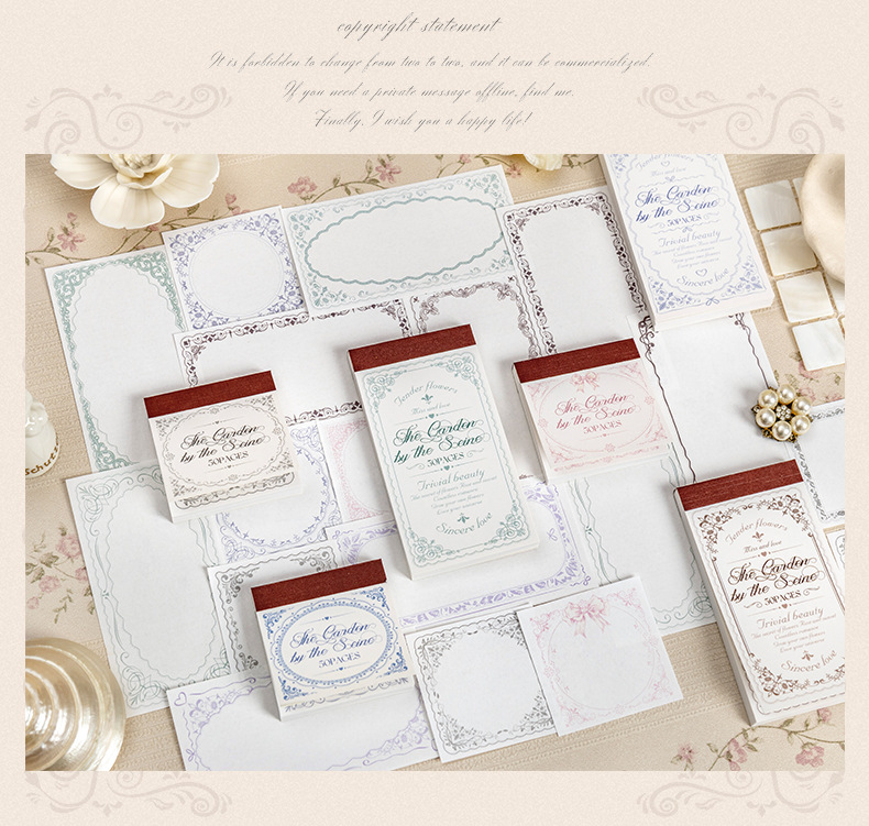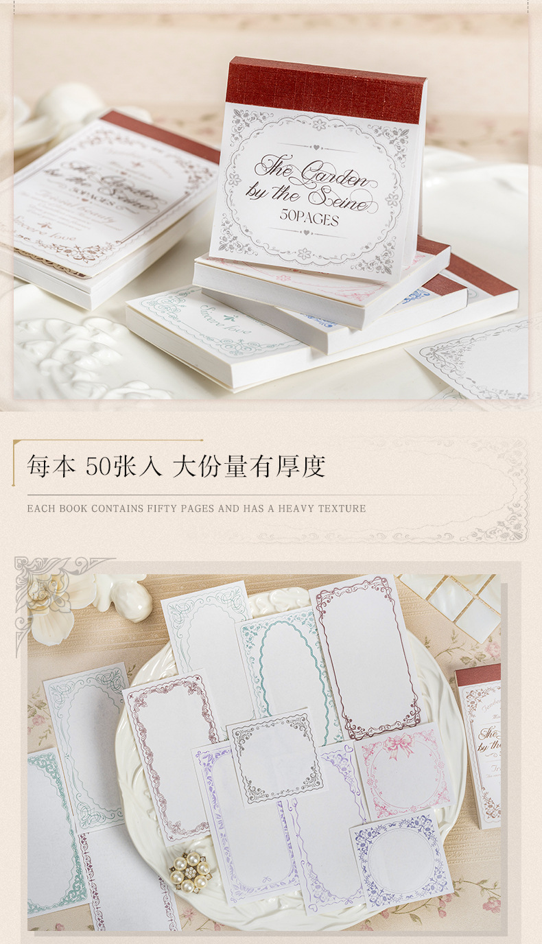 세느강둑의 정원 더블 사이즈 메모장 복고풍 프랑스 질감 테두리로 수첩 배경을 쓸 수 있습니다.스토어 가기