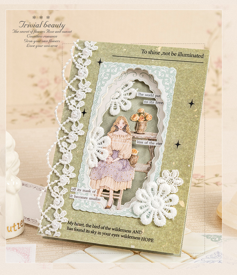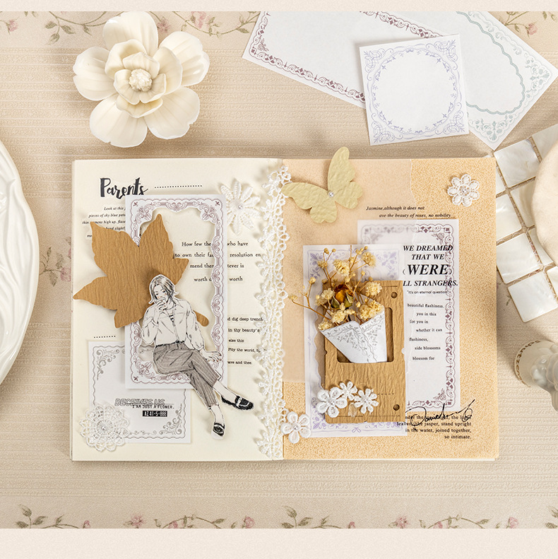 세느강둑의 정원 더블 사이즈 메모장 복고풍 프랑스 질감 테두리로 수첩 배경을 쓸 수 있습니다.