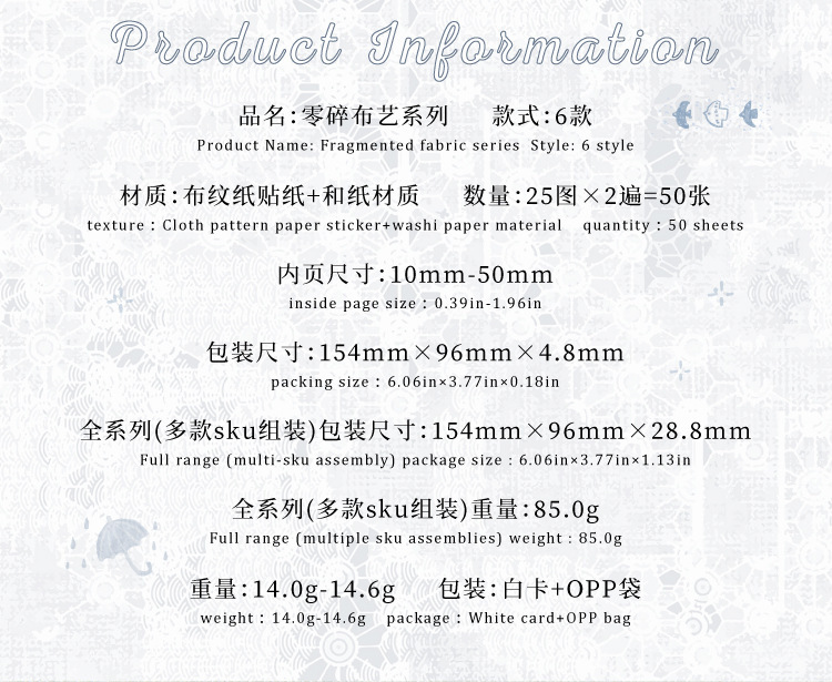 Sugar Poetry 더블 팩 손으로 찢은 스티커 팩 잔해 패브릭 시리즈 색상 테마 소재 핸드북 장식 컷 필름 스티커