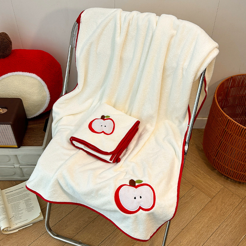 Ins 귀여운 수 놓은 야채 수건 산호 벨벳 두꺼운 흡수성 보푸라기없는 고급 얼굴 수건 학생 드라이 헤어 타월스토어 가기