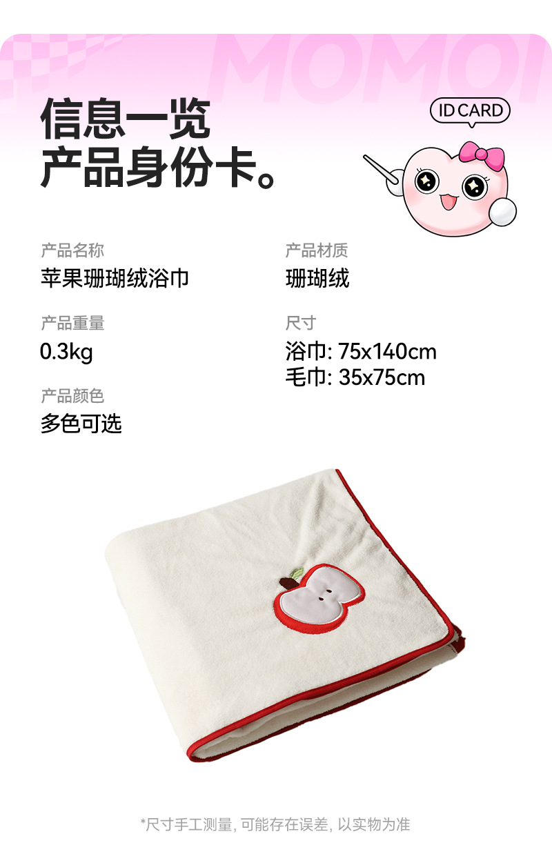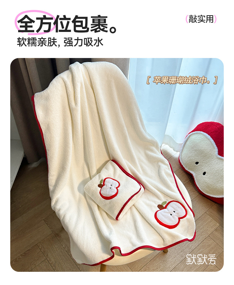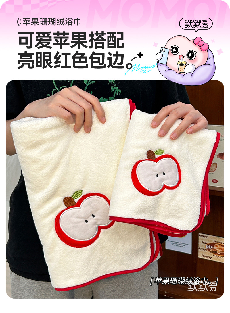 • 애플 목욕타월 + 핸드타올 [코랄벨벳]