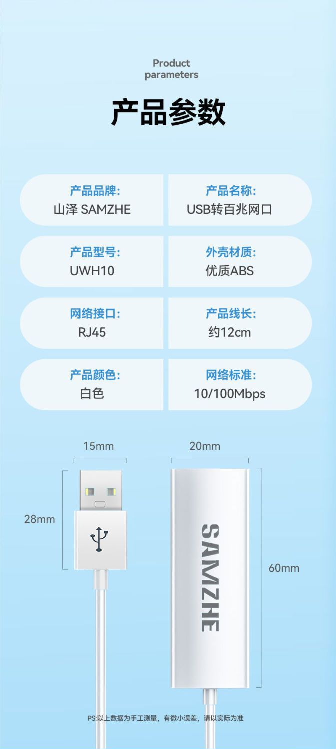 • [USB 네트워크 카드] 100M 네트워크 포트 + 1.5mM 네트워크 케이블