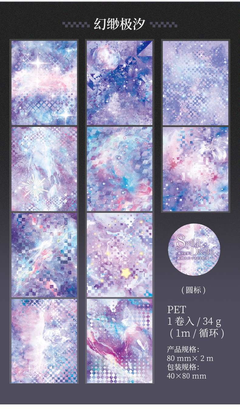 Tidal Star Dream 대형 PET 테이프 컬러 핸드북 콜라주 장면 장식 재료 배경 기본 스티커