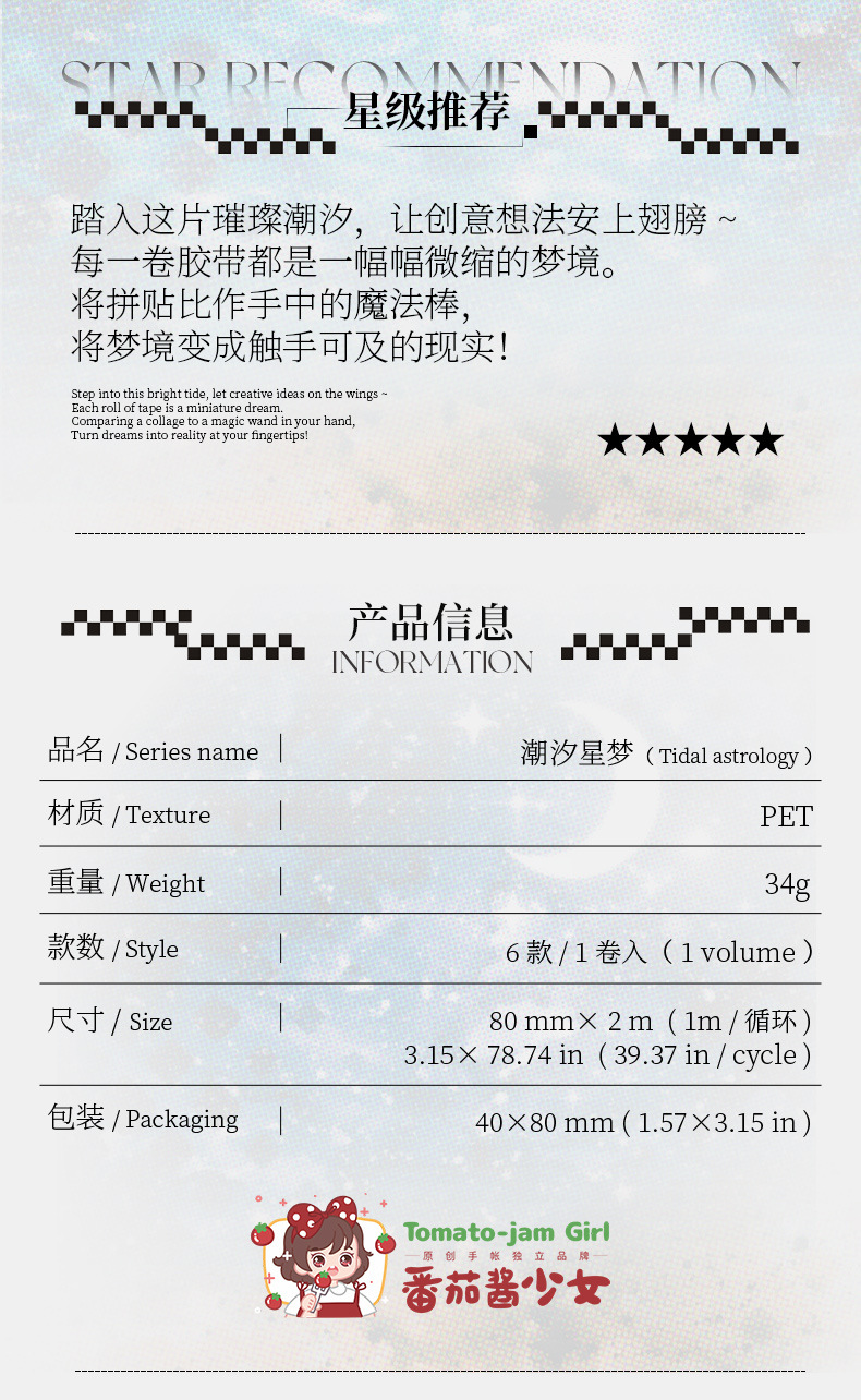 Tidal Star Dream 대형 PET 테이프 컬러 핸드북 콜라주 장면 장식 재료 배경 기본 스티커스토어 가기