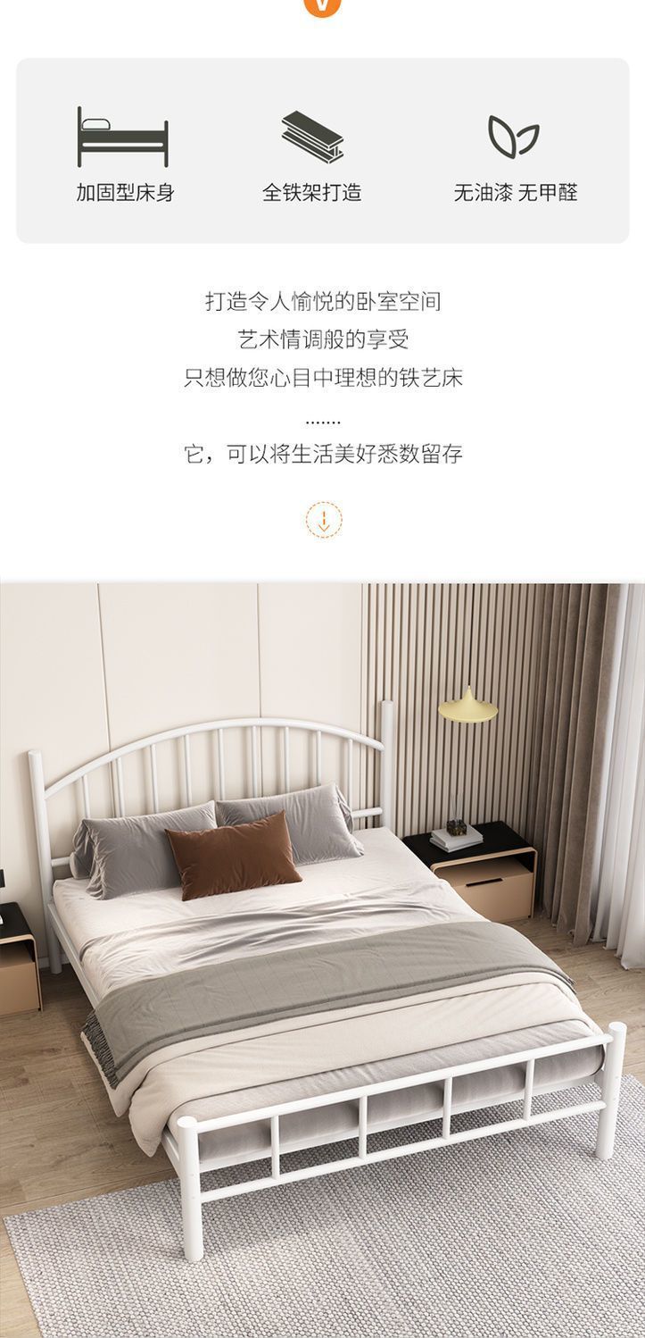Nordic Iron Bed 더블 침대 Silent Modern 1.8m Iron Bed 1.5m Rental Room Iron Frame Bed 12 싱글 침대스토어 가기