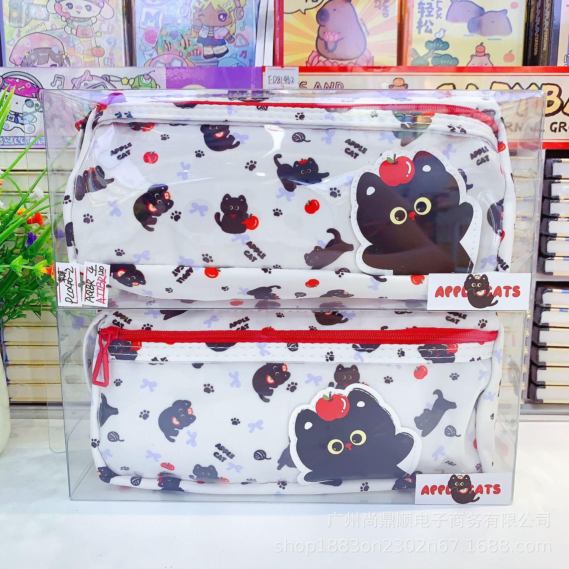 새로운 스타일의 서러운 개 사과 고양이 연필 가방 귀여운 애완 동물 인쇄 대용량 두꺼운 안감 학생 파티 문구 도매스토어 가기