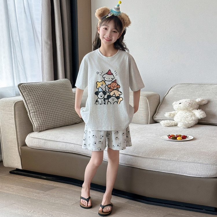 여자 잠옷 2025 새로운 여름 얇은 반팔 크로스 바운드 투피스 세트 어린 소녀는 에어컨 가정복을 착용할 수 있습니다스토어 가기